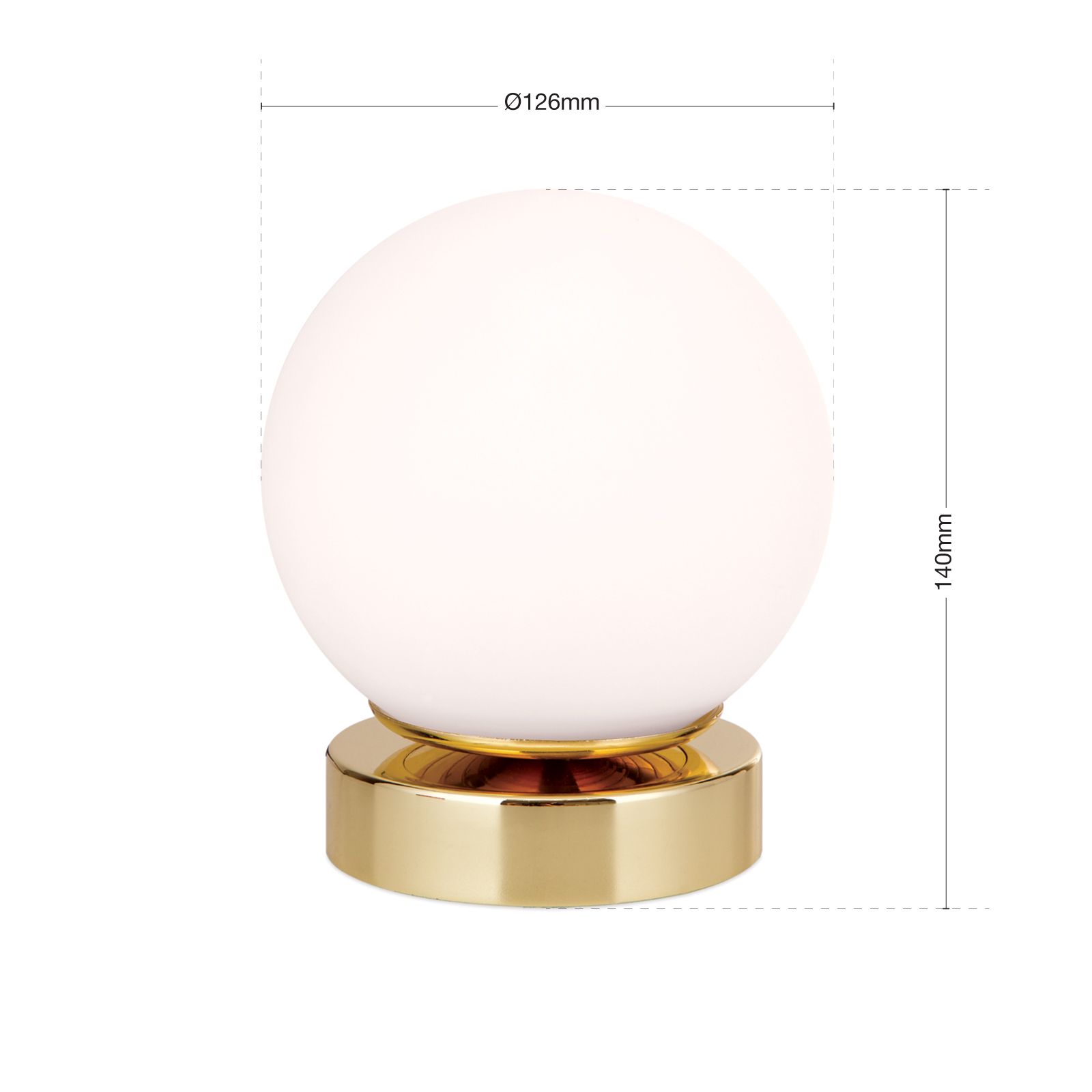 Touch-Tischleuchte TRICIA, Gold mit opalmattem Glasschirm