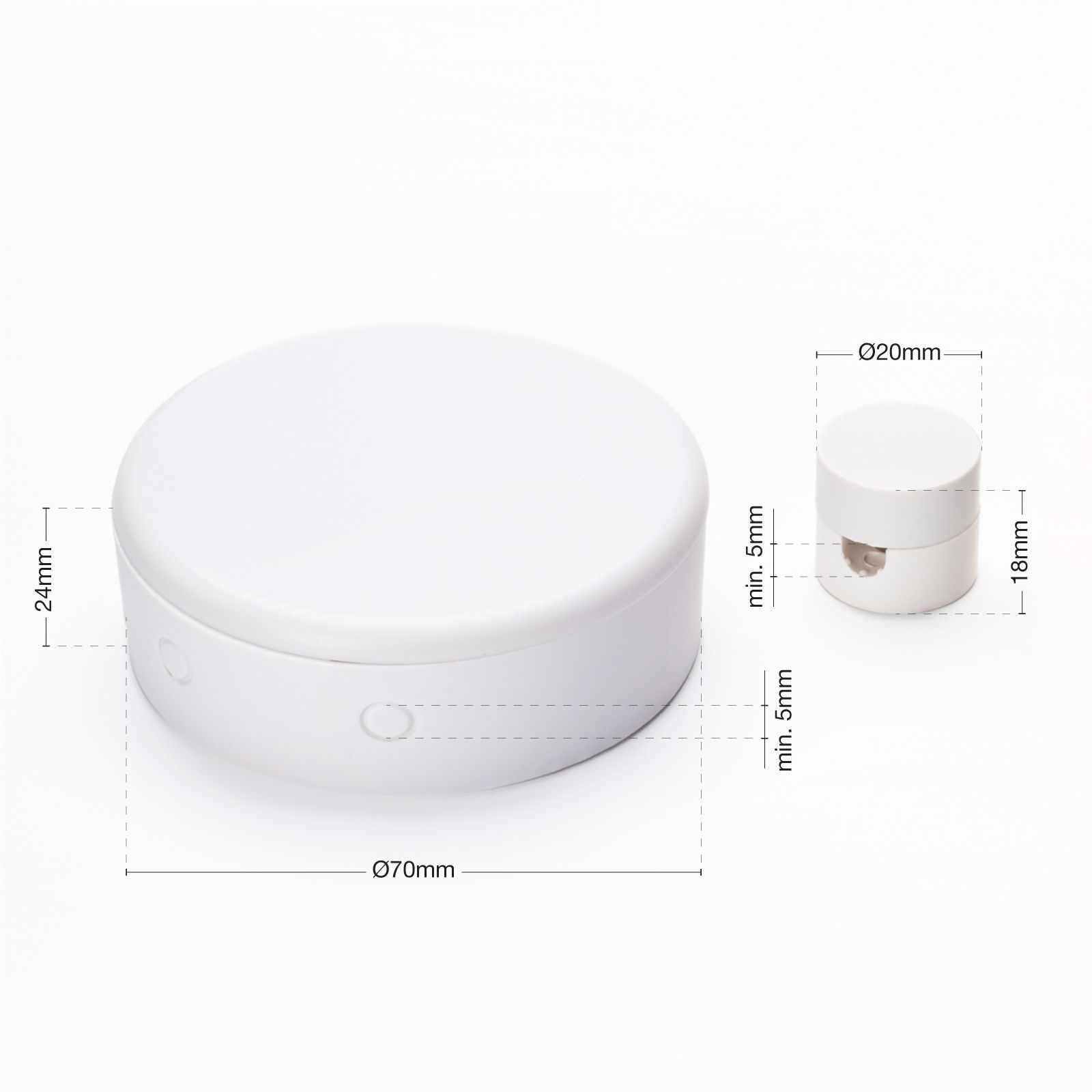 - Verteilerdose: Ø 70 mm, Höhe 24 mm