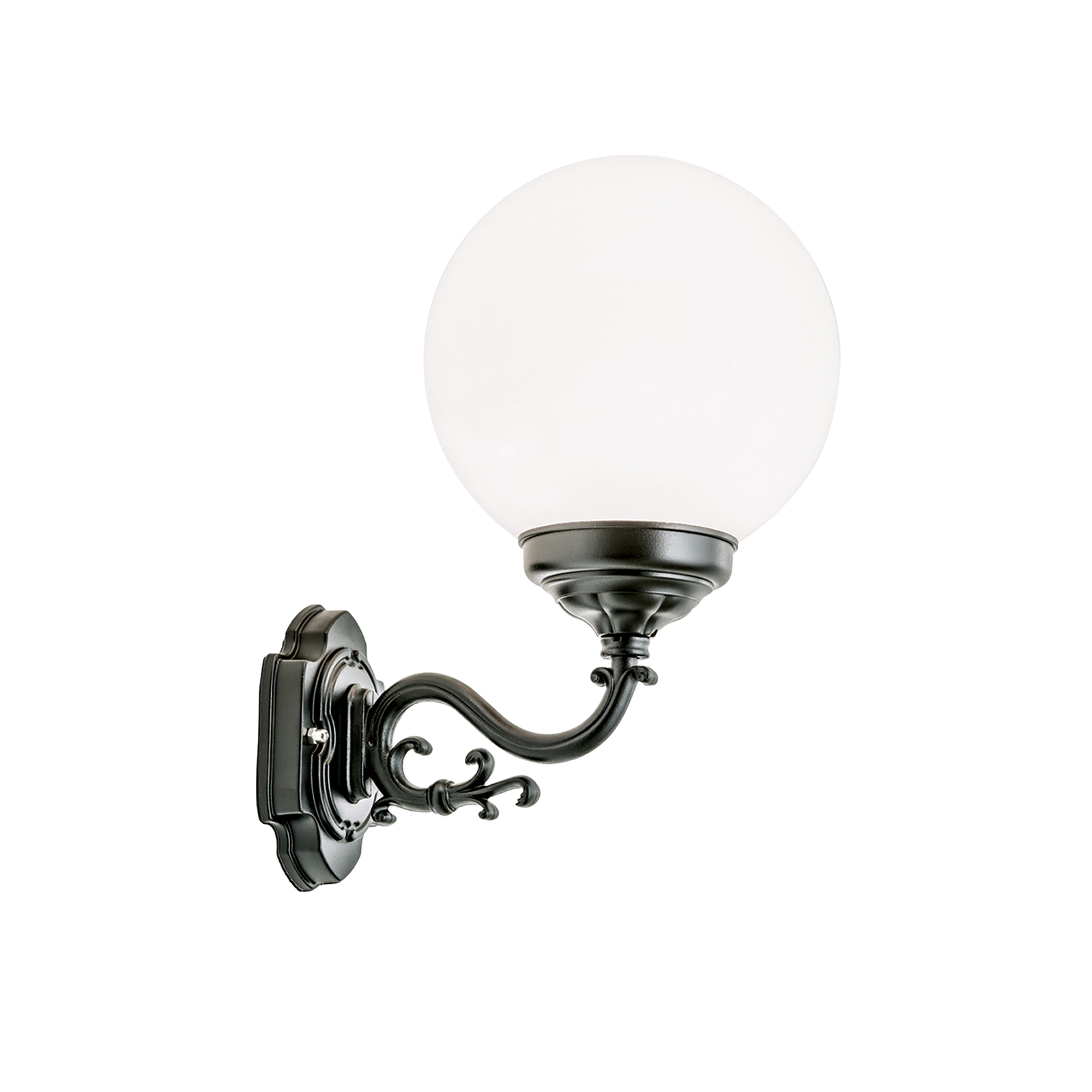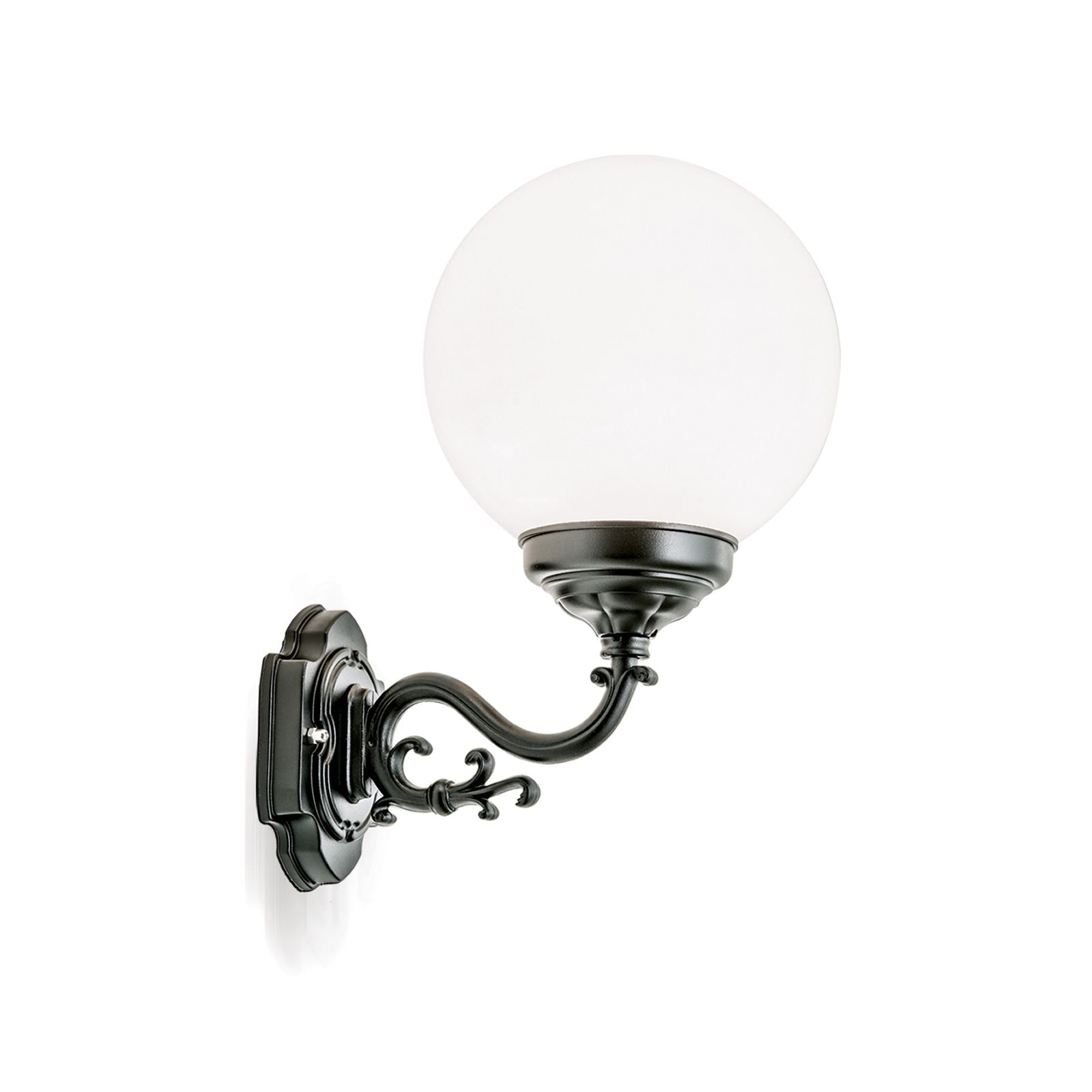 Ganz klassisch präsentiert sich die Wandaußenleuchte REIKA und überzeugt mit ihrem eleganten Schmiededesign. Aus der Wandhalterung ragt ein verzierter Arm empor und trägt eine bruchfeste, opalglänzende Acrylglaskugel. Sie sorgt für ein angenehmes Licht mit blendfreier Wirkung, was besonders in der Nacht wünschenswert ist. Ihr Licht gibt sie gleichmäßig und großflächig in die Umgebung, weshalb sie sich für die Beleuchtung von Fassaden und darunter liegenden Wegen im Bereich von Eingägen und Garagen eignet. Mit der Schutzklasse IP43 ist sie vor grobkörnigen Fremdkörper (>1mm) und Sprühwasser geschützt. Die Leuchte ist mit einem Phasenanschnittdimmer dimmbar. Sie ist mit 1 E27-Fassung ausgestattet und kann mit maximal 75 Watt bestückt werden. Mit sparsamen LED-Lampen eignet sie sich für den Einsatz als energiesparende, permanente Lichtquelle.