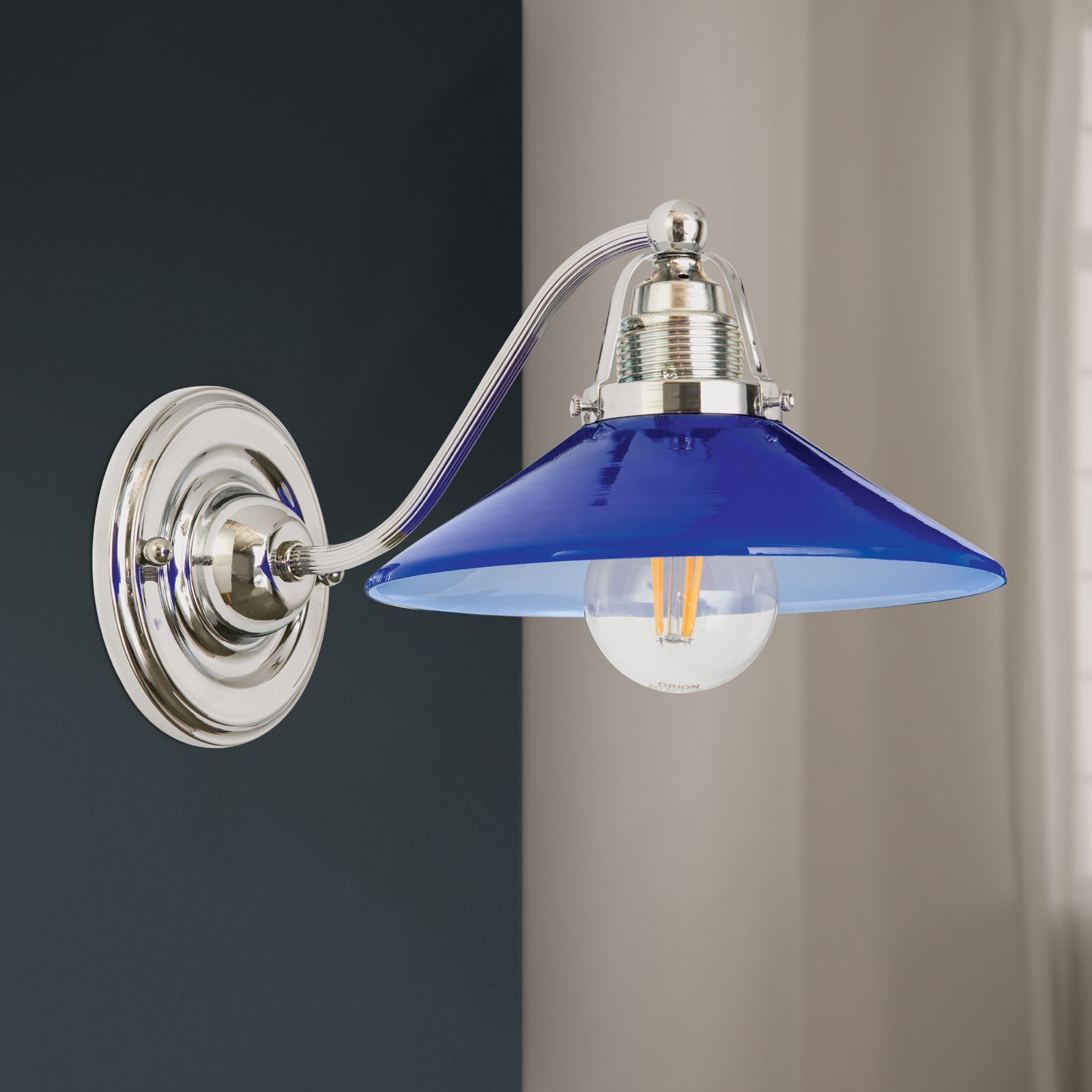 Wandleuchte ARTDESIGN, 1-flammig, Chrom, mit kobalt-blauem Glas