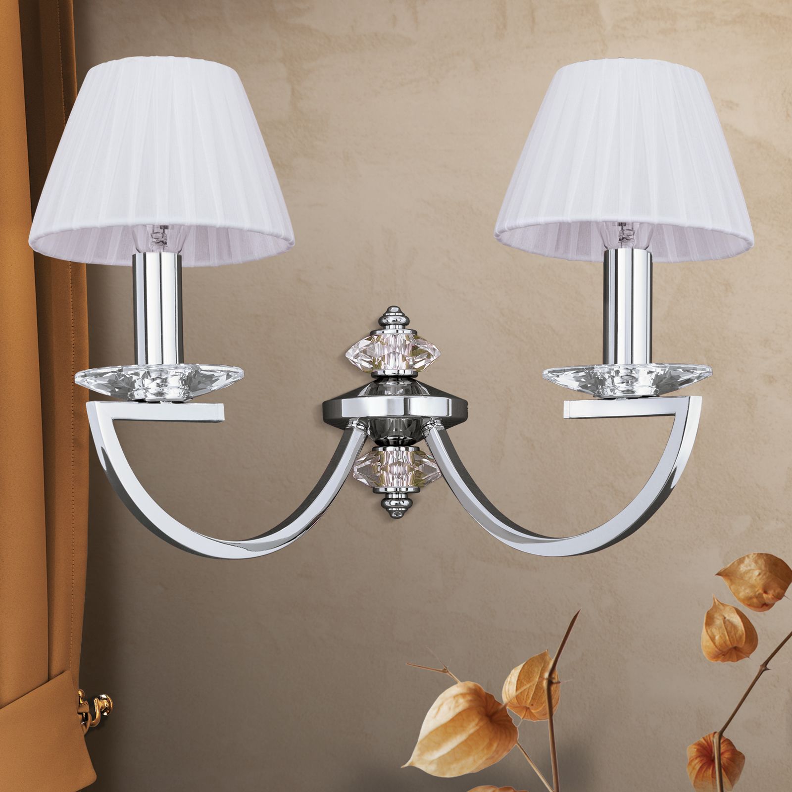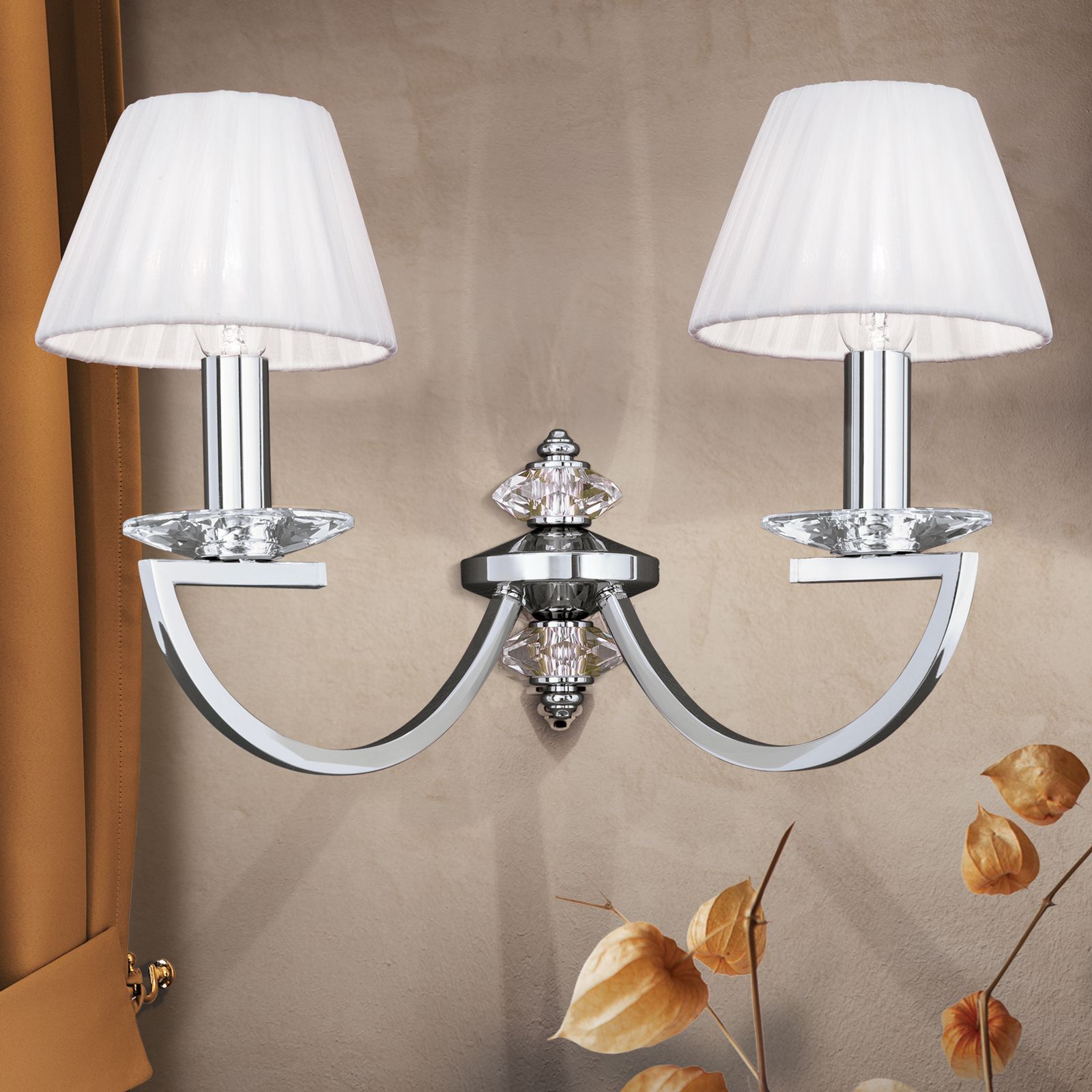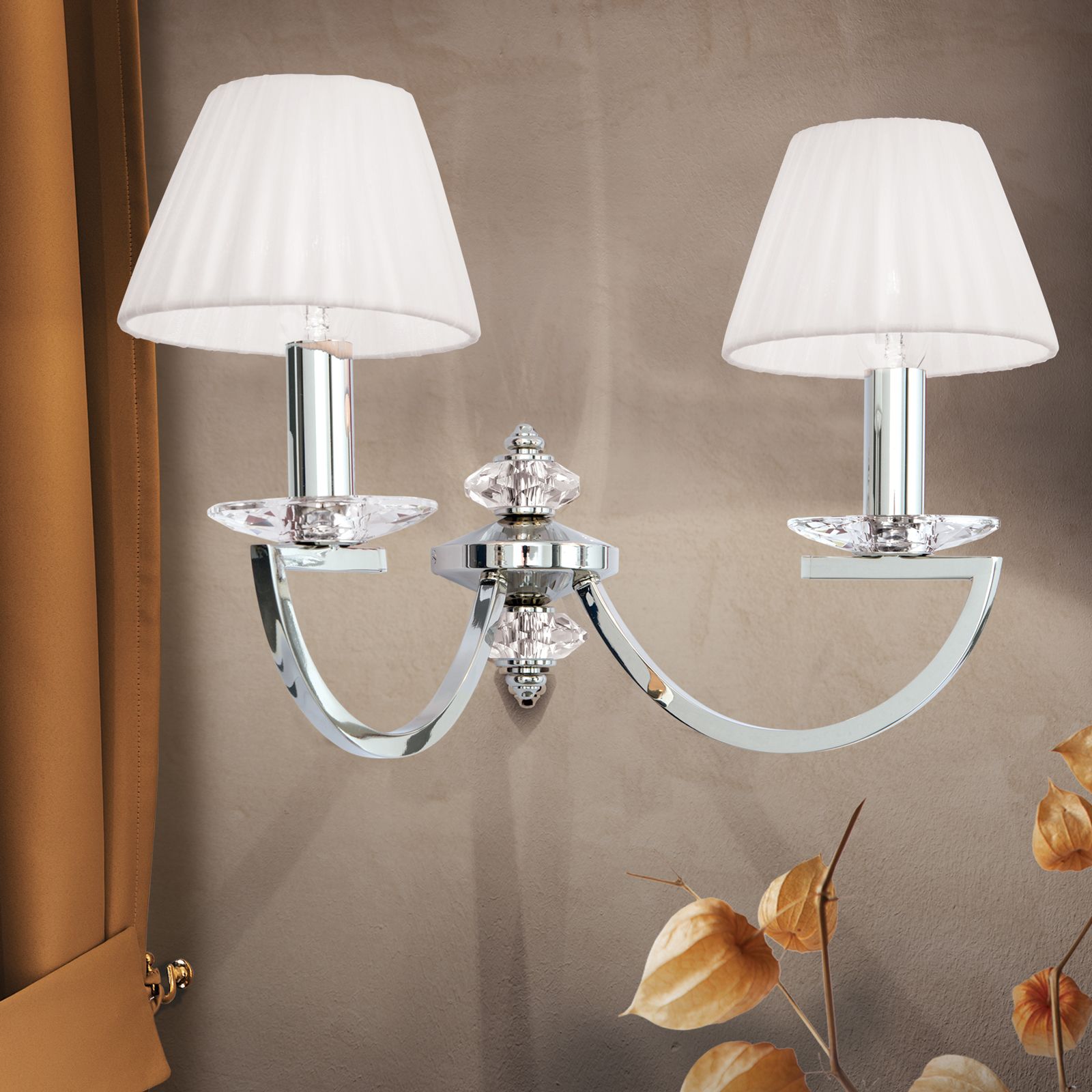Wandleuchte AVALA, 2-flammig, Nickel mit weißen Schirmen