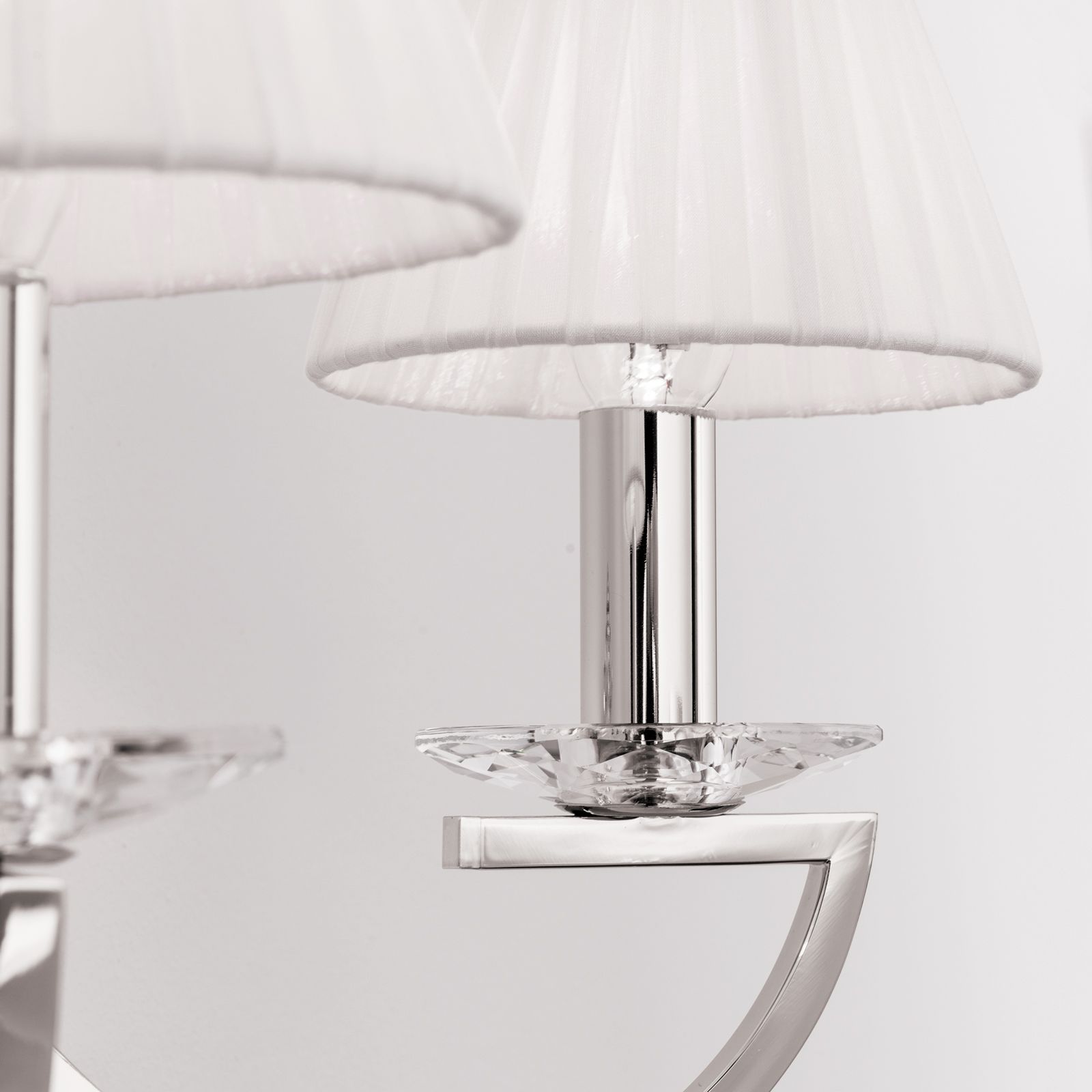 Die Metallkomponenten aus langlebigem Vollmessing harmonieren in glänzendem Nickel ideal mit weißen Textilschirmen, während die Oberflächenveredelung in 24 Karat Gold mit champagnerfarbenen Schirmen hervorragend zur Geltung kommt. Gefertigt in österreichischer Handarbeit wird jede Leuchte auf höchste Qualität geprüft und mit Leidenschaft produziert. Zudem verfügt sie über Schutzart IP20 und Schutzklasse I.