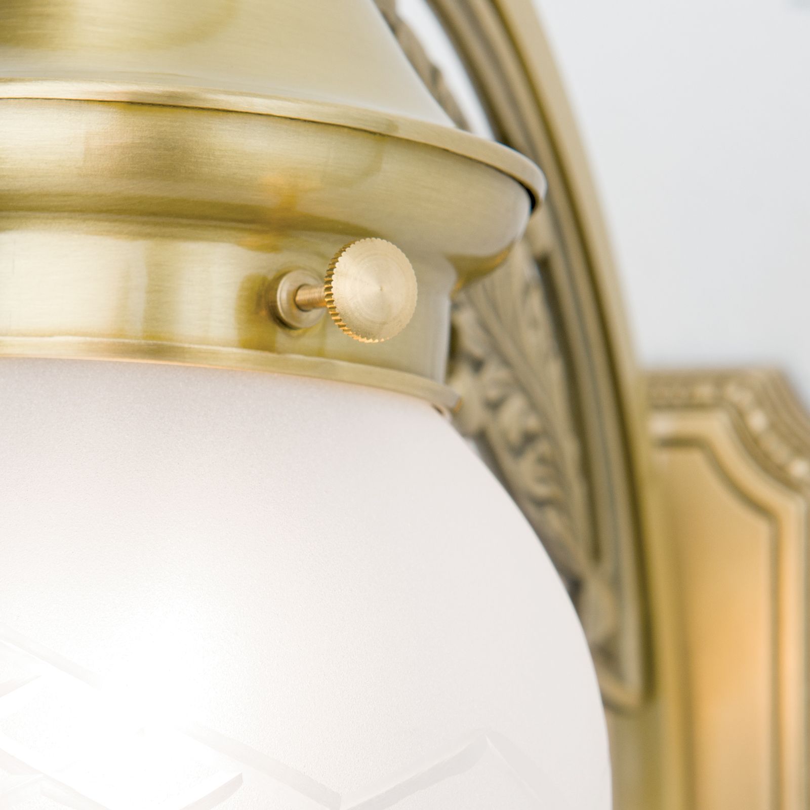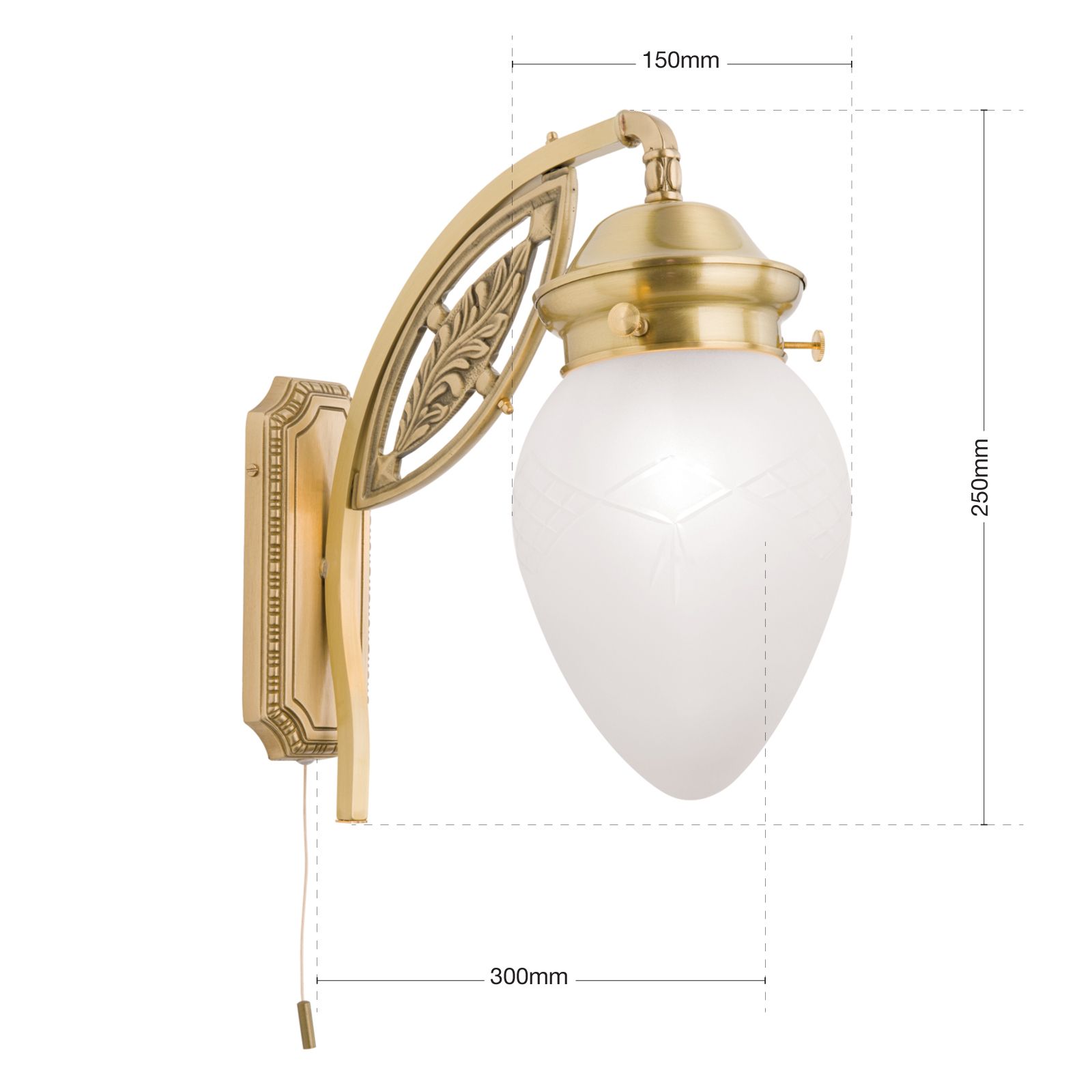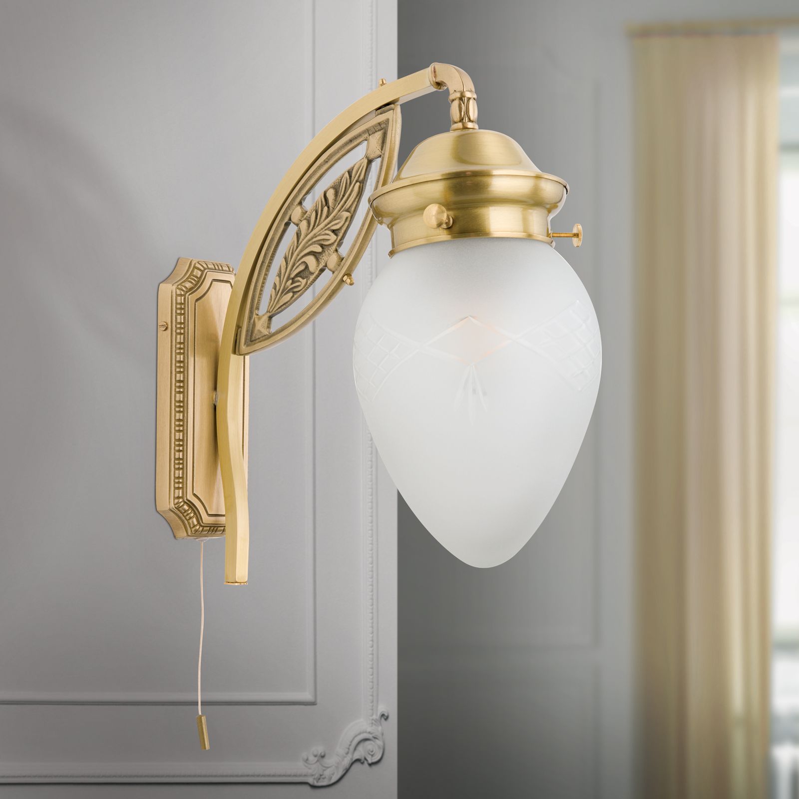 Der bezaubernde ungarische Jugendstil findet sich in vielen Gestaltungselementen der 1-flammigen Wandleuchte BUDAPEST. Der vignettenhafte Rahmen des Wandgestells spiegelt den Hang zum Historismus wider. Der vierkantige Arm kann als Zitat des Secessionsstils angesehen werden. Besonders typisch ist die Einflechtung von magyarischen Ornamentmotiven als Gravur auf dem zapfenförmigen Schirm. Beidseits eines Sofas in einem Wohnzimmer oder links und rechts eines Bettes in einem Schlafzimmer macht sich diese Leuchte ausnehmend gut. Das weiche, heimelige Licht der klar-matten Schirme wird für Behaglichkeit sorgen. Diese Wandleuchte verfügt über eine E27-Fassung für bis zu 60 Watt.