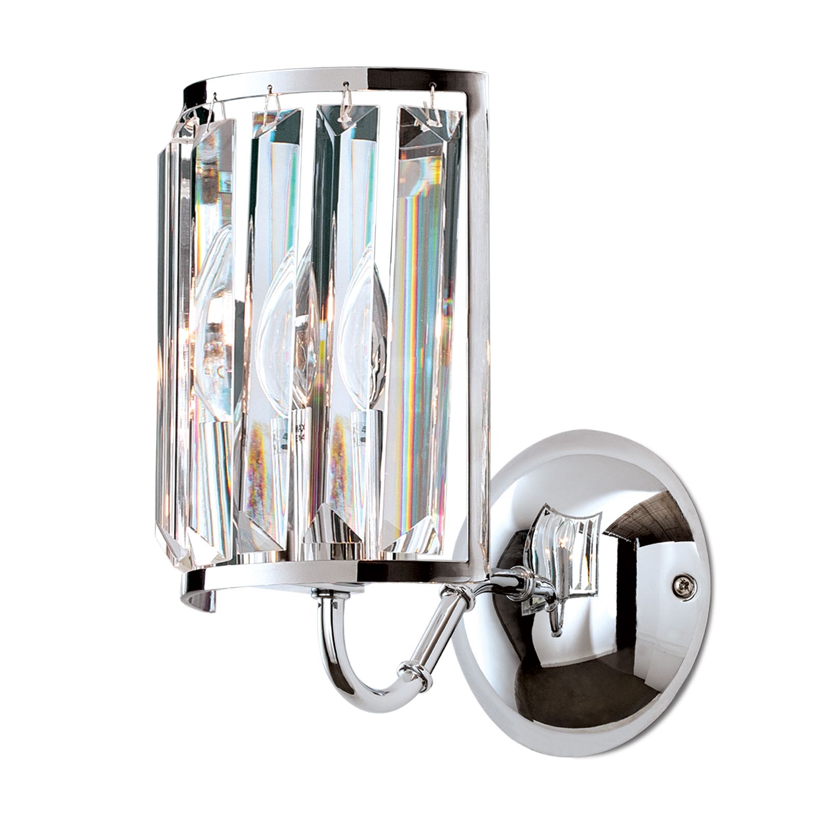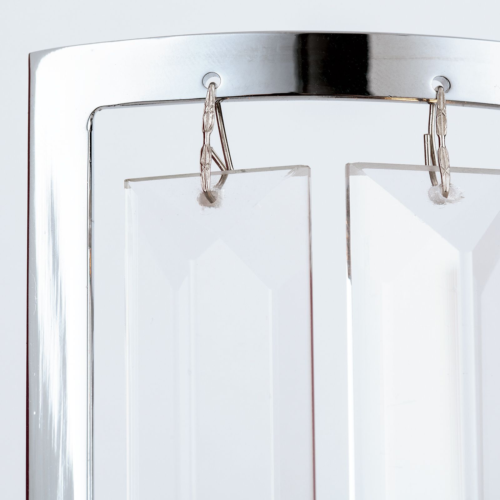 Das Glitzern und Funkeln der Kristallprismen und verchromten Veredelung von Zierplatte und Arm verleiht der Wandleuchte GSTAAD einen festlich dekorativen Charakter. Der längliche Kristallbehang besteht aus feinem K9-Kristallglas und ist in einem Halbkreis vor der Lichtquelle angeordnet, der der Wandleuchte ihr edles, individuelles Erscheinungsbild verleiht.