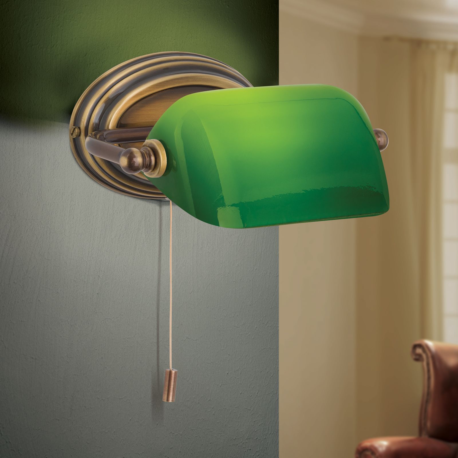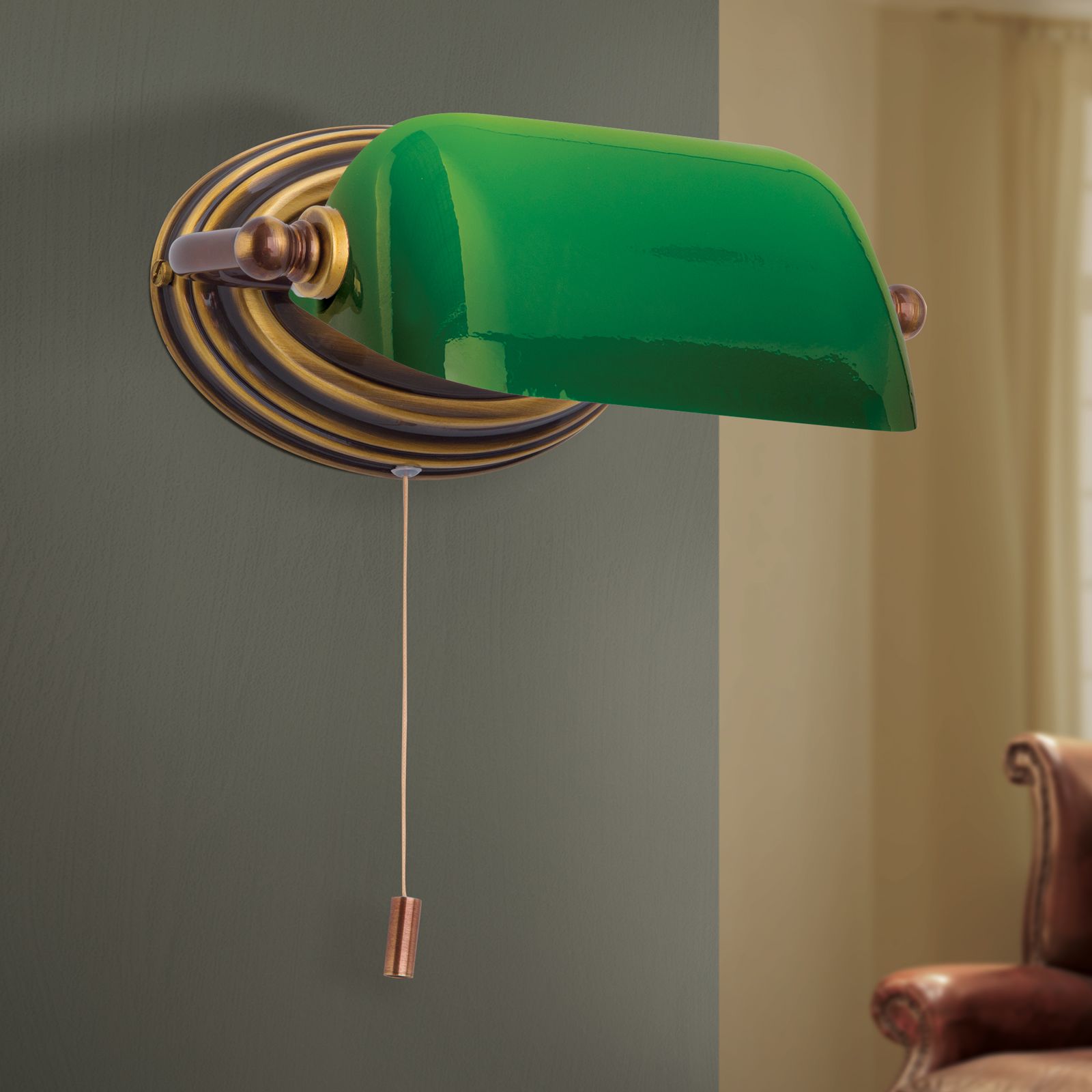 Wandleuchte HARVARD, Patina mit grünem Glasschirm