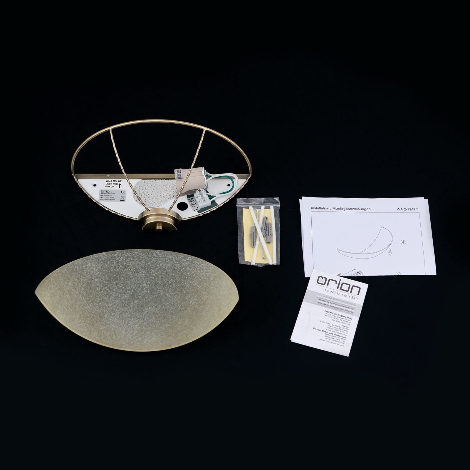 Umfasst wird der Glasschirm von einem zarten Stahlgestell, dessen Streben an gewundene Schiffstaue erinnern und die Leuchte enorm leicht erscheinen lassen. Mithilfe eines Phasenabschnittdimmer kann die Lichtstimmung reguliert werden. Die Wandleuchte ist mit einer E27-Fassung ausgestattet und kann mit maximal 60 Watt bestückt werden. Wird die sie mit sparsamen LED-Lampen betrieben, trägt sie zu einer energieeffizienten Beleuchtung Ihres Zuhauses bei.