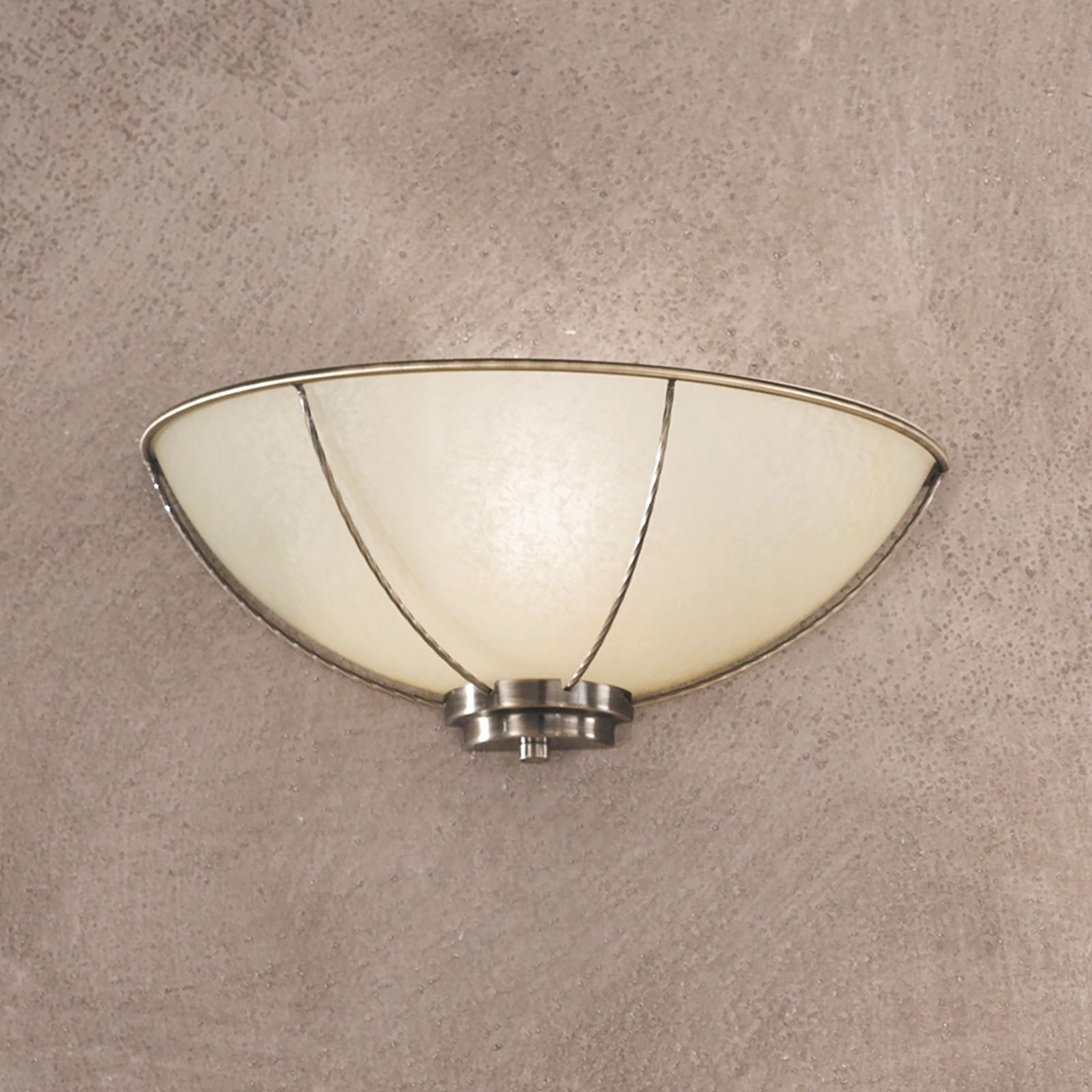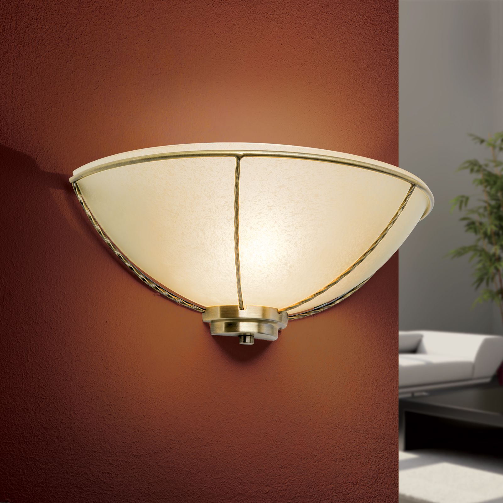 Die klassisch in Patina gestaltete Wandleuchte aus der Serie MAURO sorgt nicht nur für eine sanfte Umgebungsbeleuchtung, sondern trägt zum Wohlfühlambiente in stilvoll eingerichteten Wohnräumen bei. Der halbrunde Schirm besteht aus Glas in einem Champagnerton, wodurch das Licht warm und gleichmäßig erscheint.