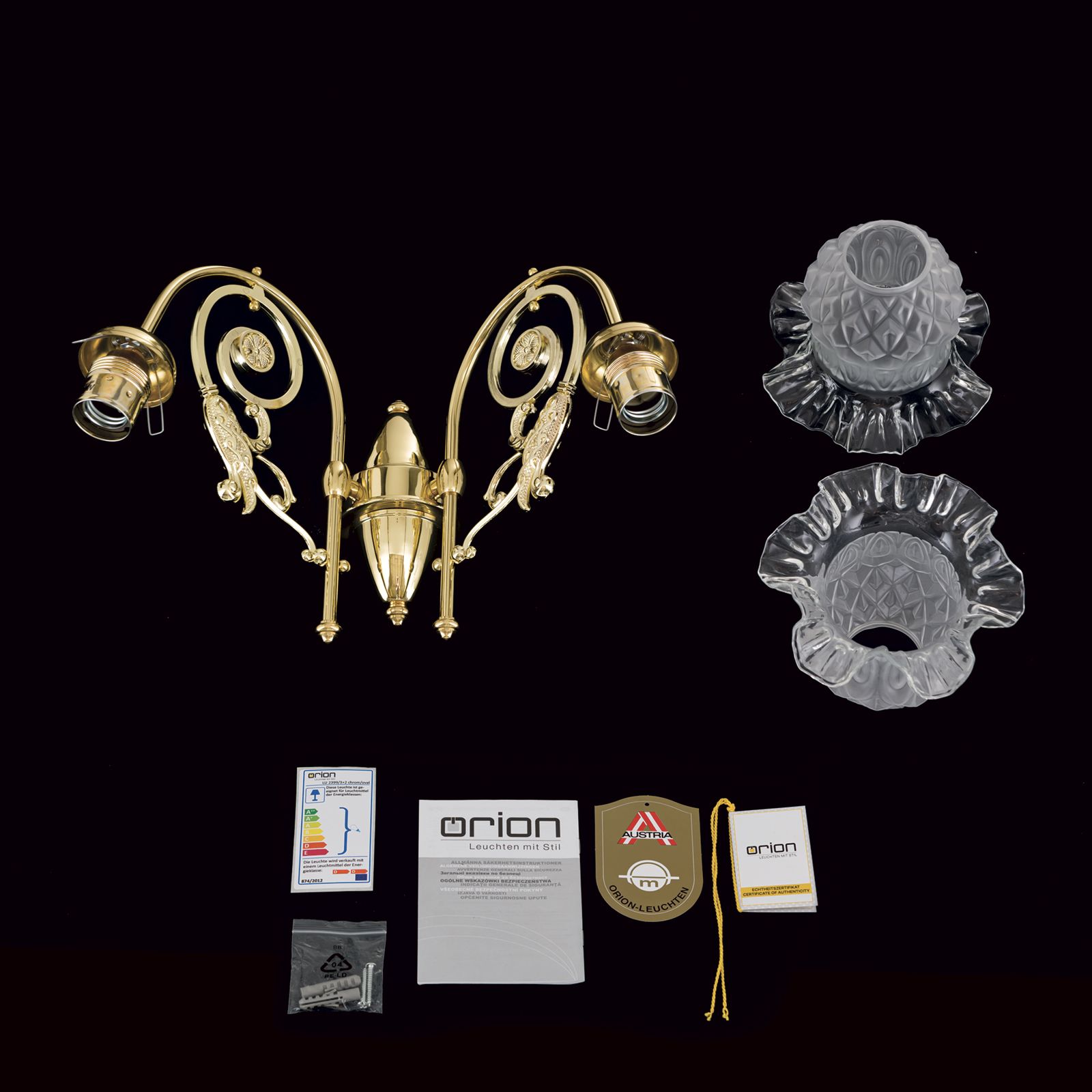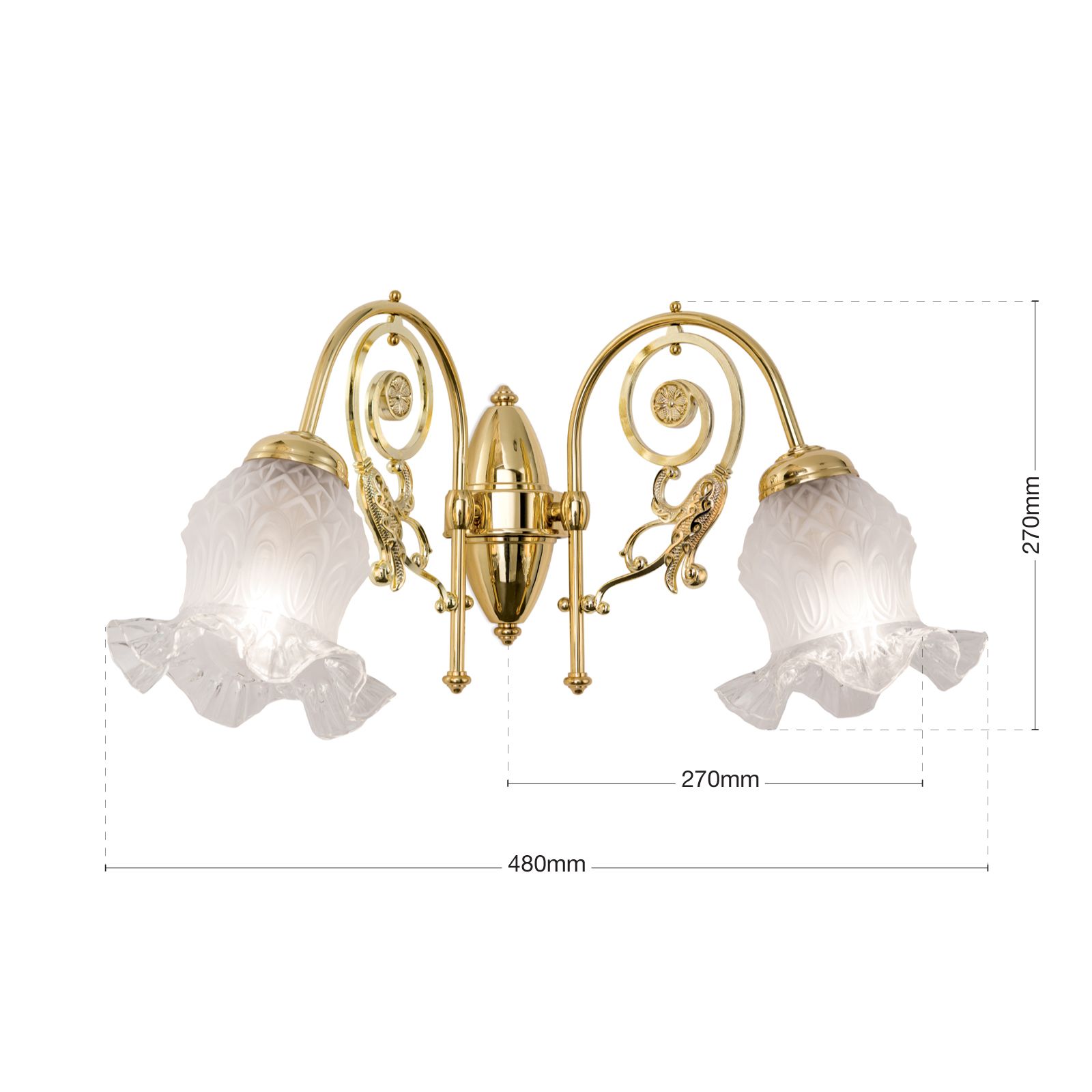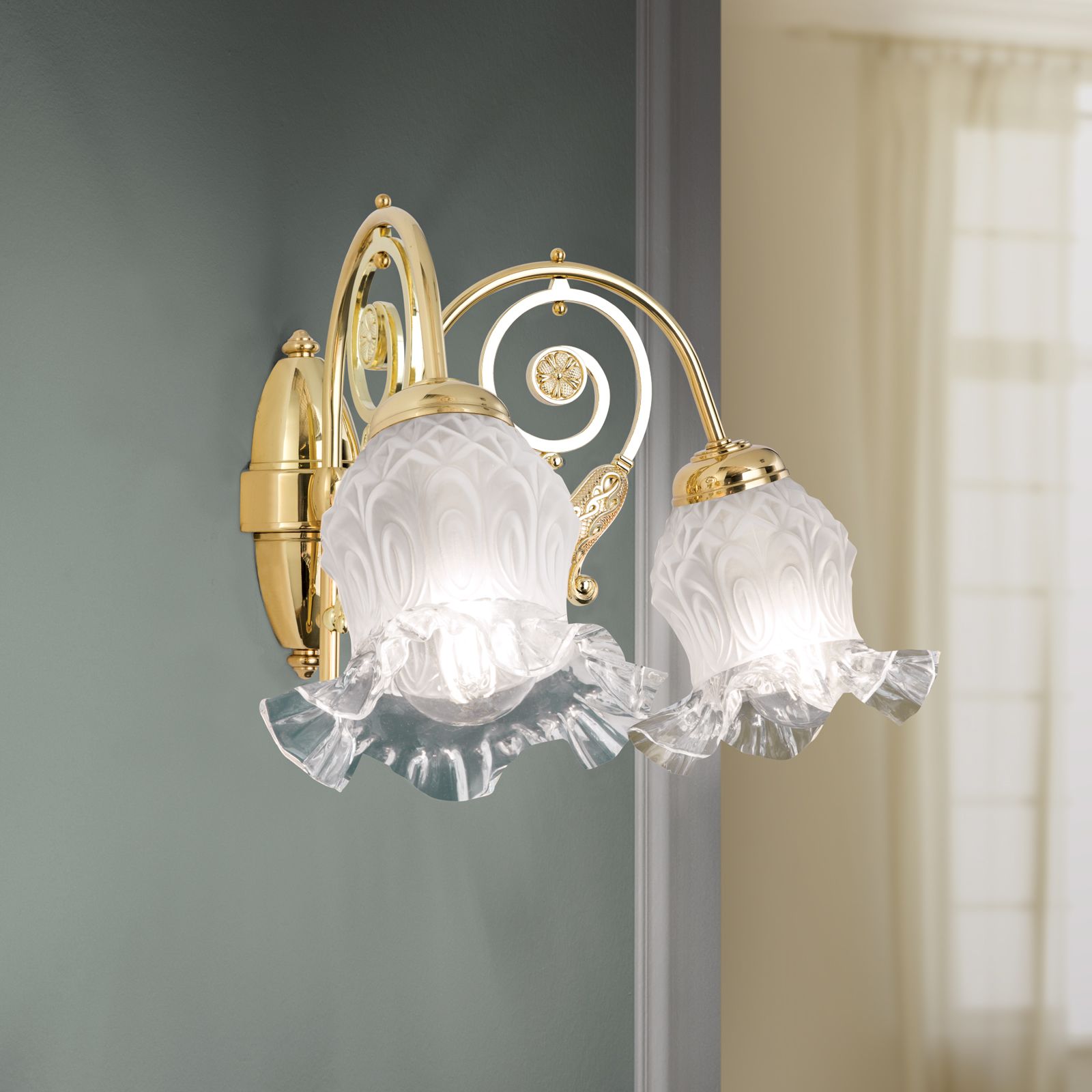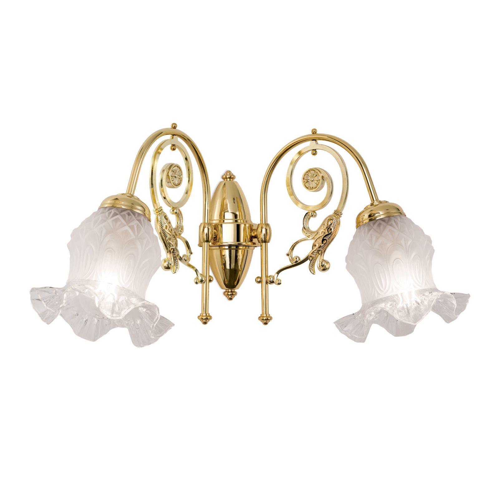 Wandleuchte RINGSTRASSE, 2-flammig, Messing glänzend, mit Blütenglas