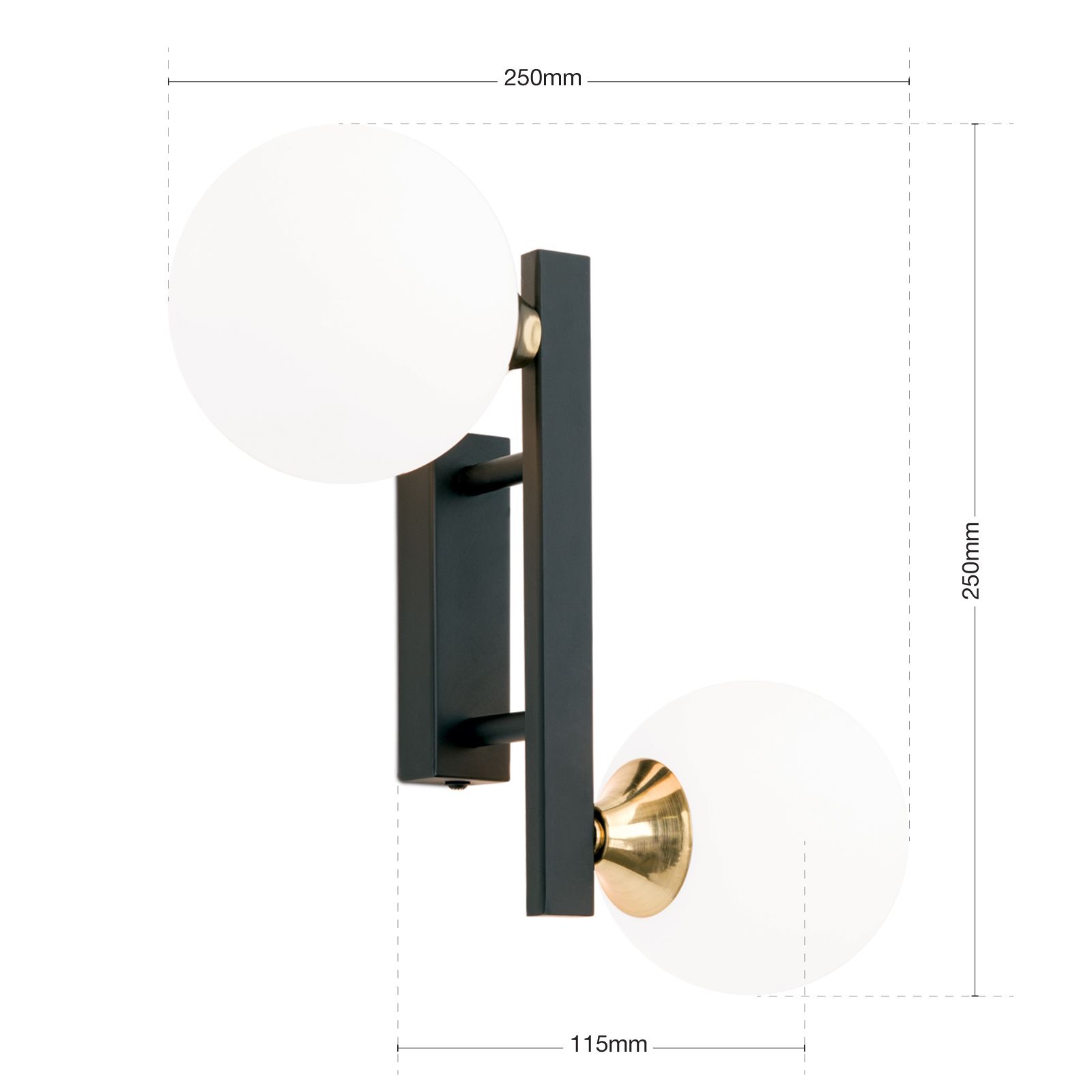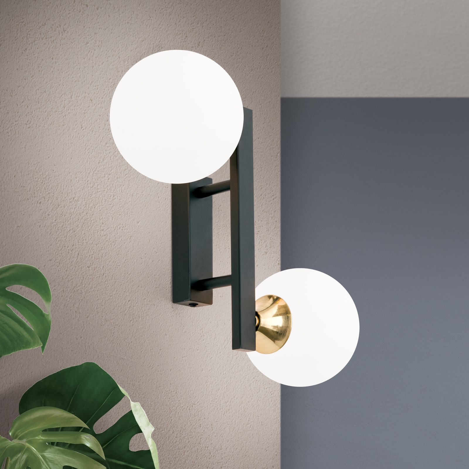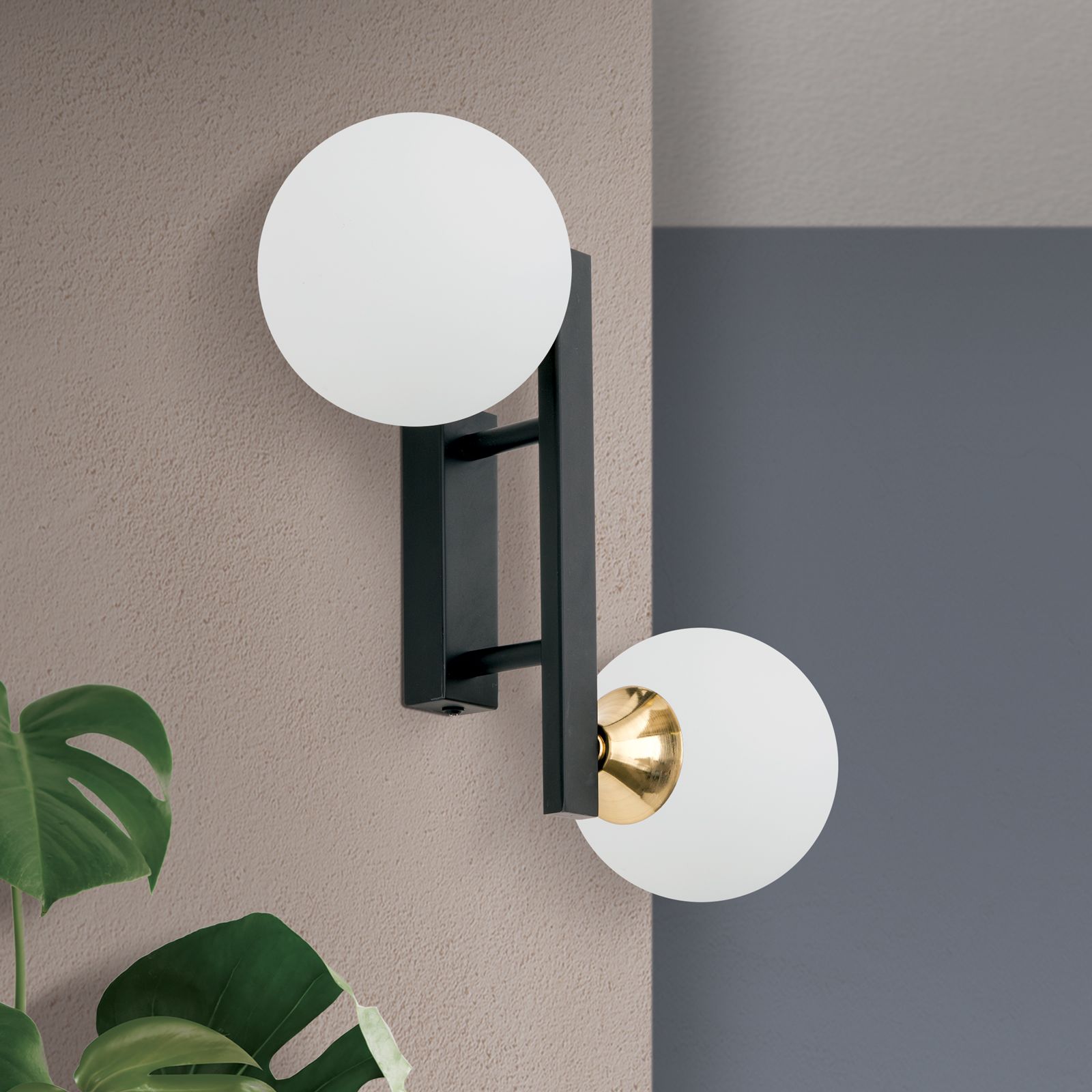 Wandleuchte SNOWWHITE, 2-flammig, Schwarz-Messing