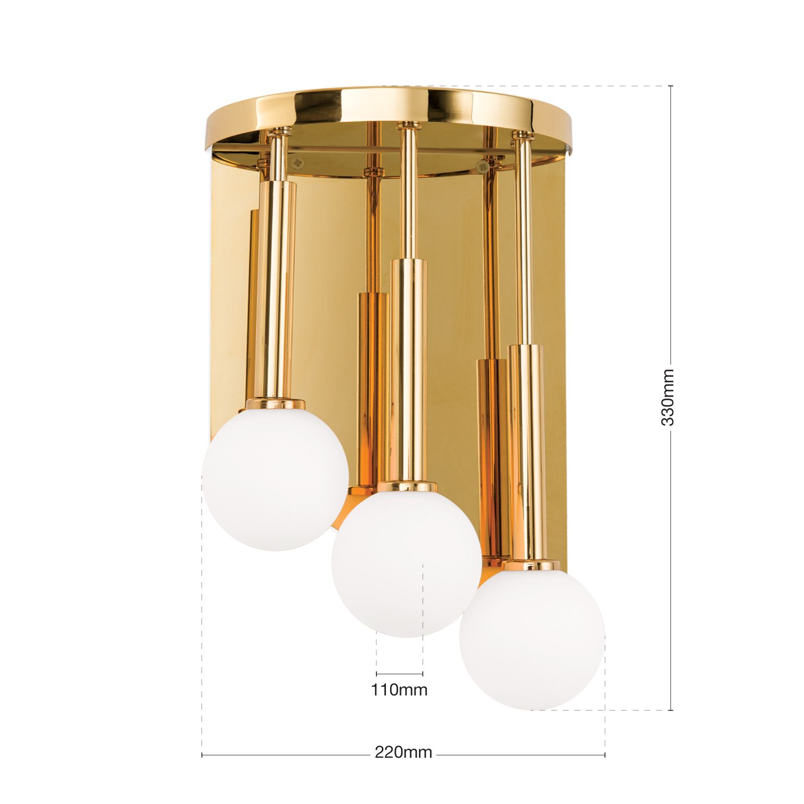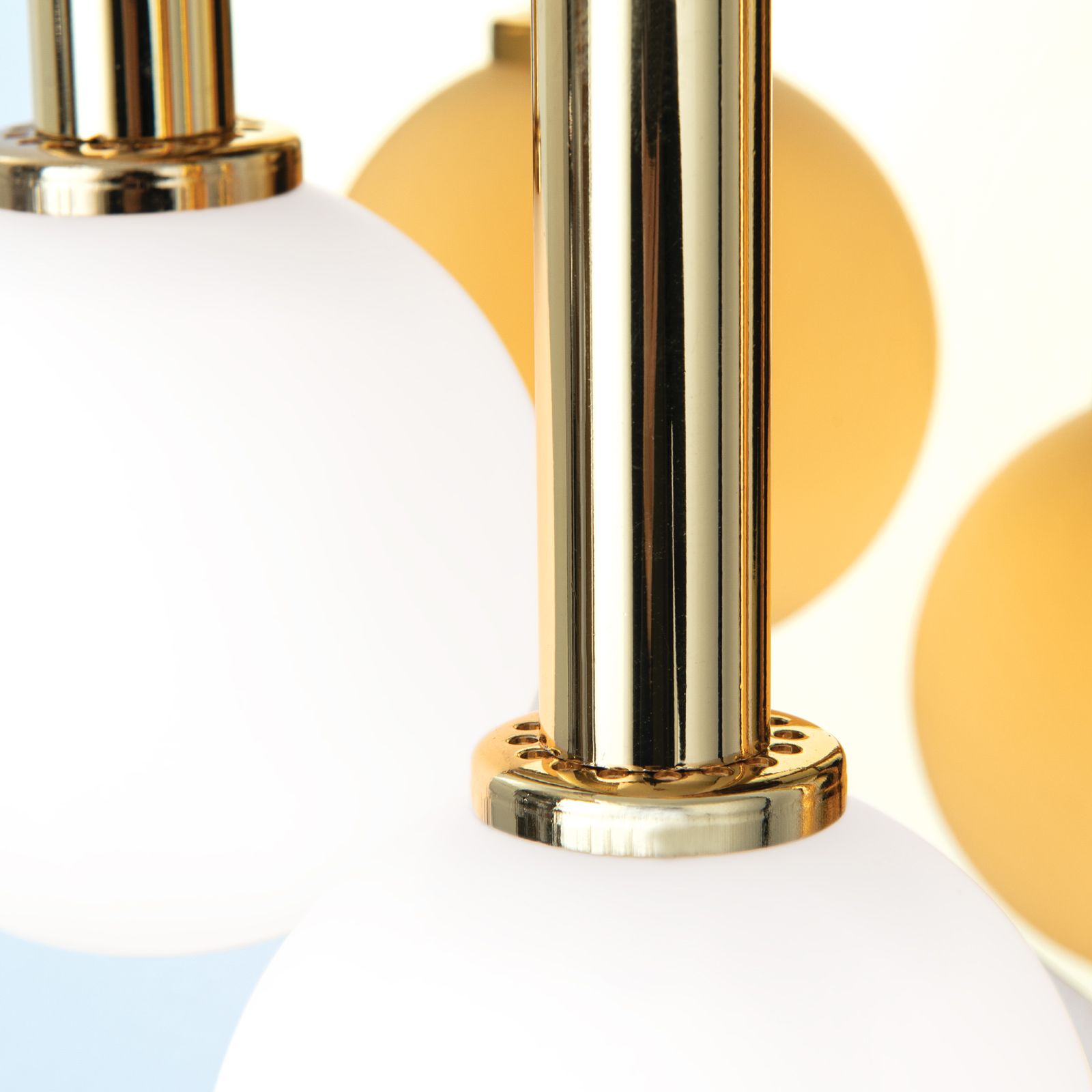 Das herausragende Designmerkmal dieser Wandleuchte sind die luxuriösen Opalkugeln, die das Licht auf elegante Weise brechen und verteilen. Diese sanften, gleichmäßigen Strahlen erzeugen eine warme und einladende Stimmung in Ihrem Raum.