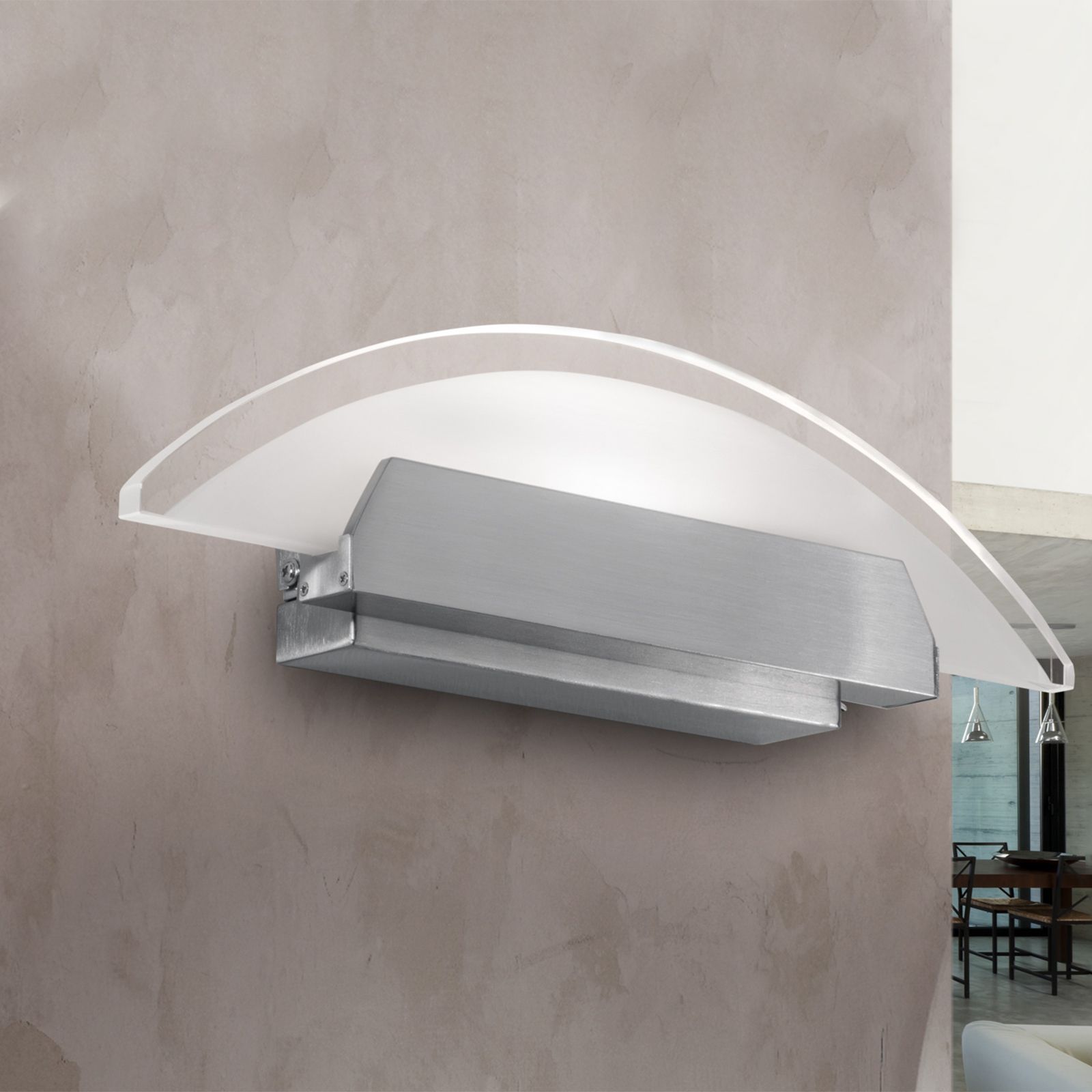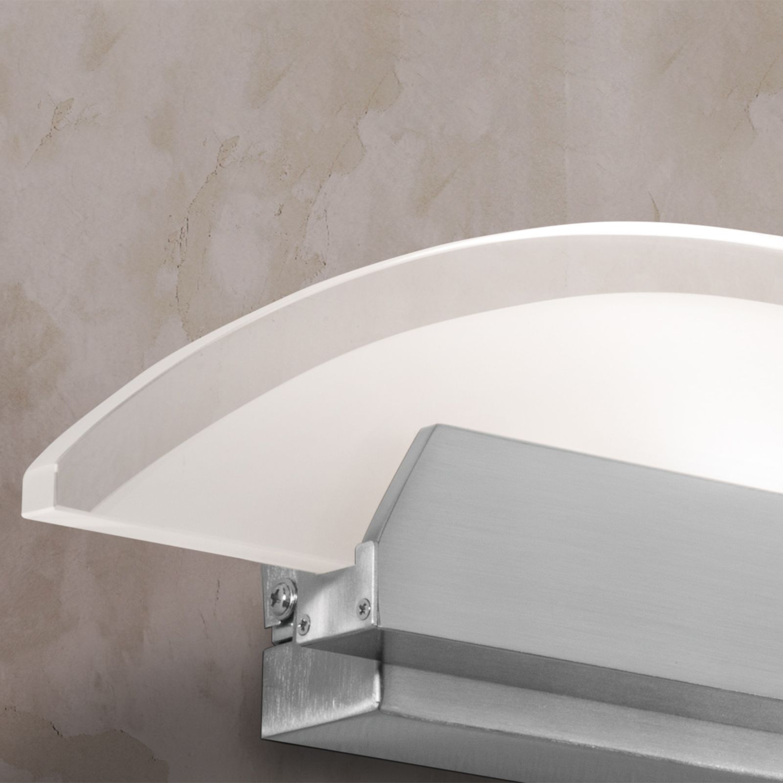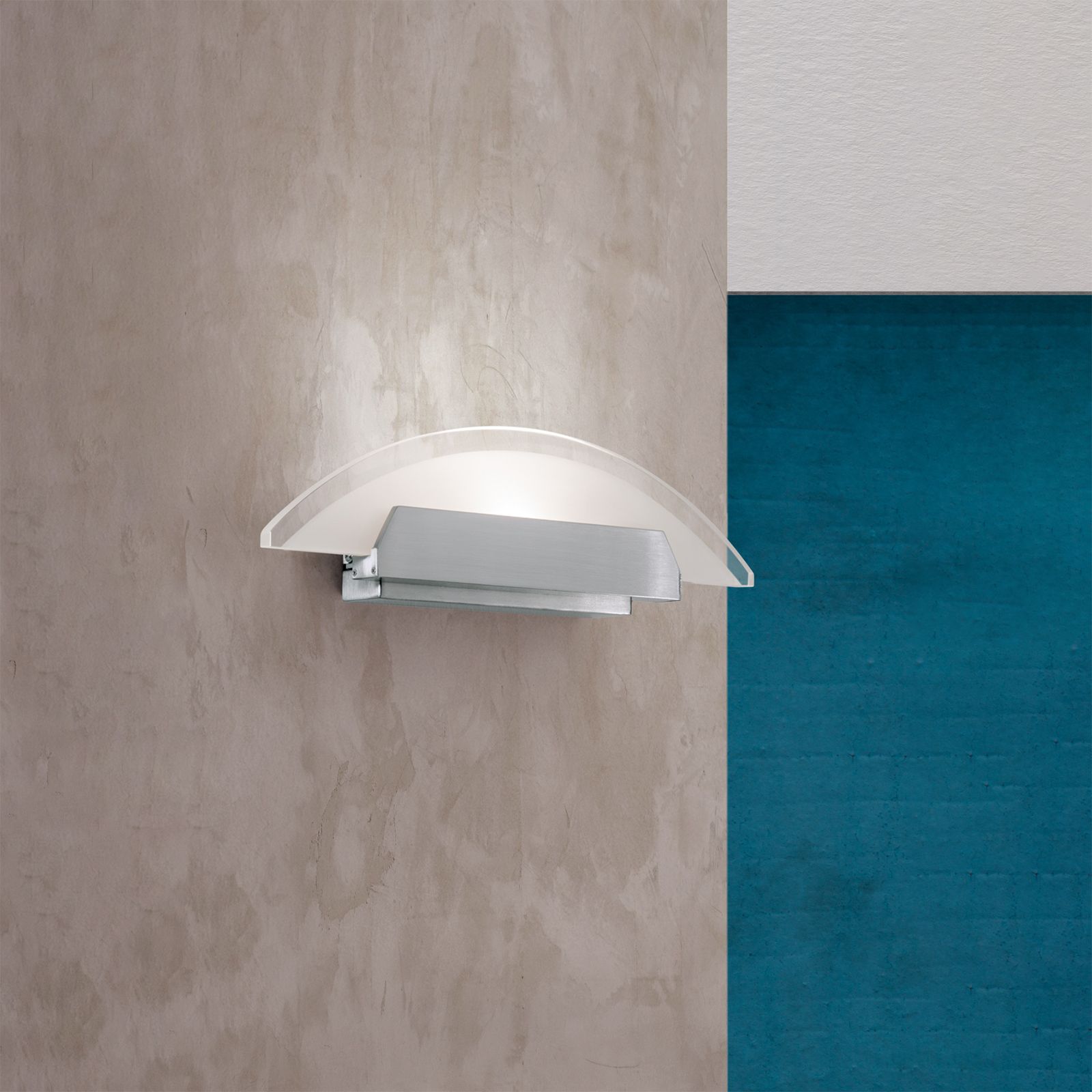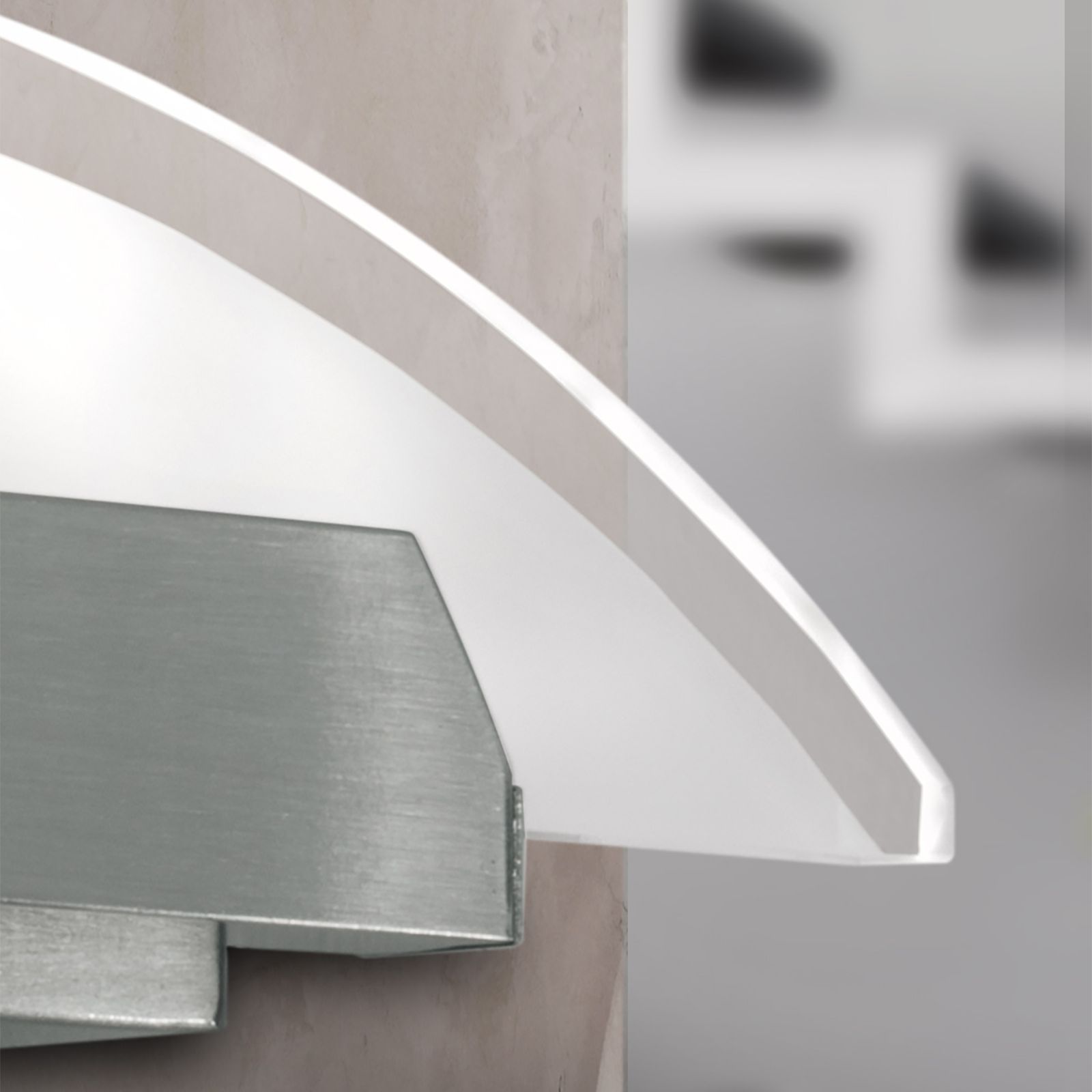Eine Oberfläche in Satin/Nickel-matt veredelt den Leuchtenkorpus aus Metall und wird mit einer Abdeckung aus Acrylglas kombiniert. In Kombination mit sparsamen LED-Lampen kann die Wandleuchte auch zur energieeffizienten, ständigen Beleuchtung verwendet werden. Die Leuchte ist mit moderner LED-Technik und einer Lichtleistung von 635 Lumen ausgestattet. Sie verfügt über warmweiße LEDs, die als gemütlich und behaglich empfunden werden. Die fest verbauten LEDS können nicht getauscht werden. Die Lampe verfügt über die Schutzart IP20 und Schutzklasse II, ein Schutzleiter ist daher nicht vorhanden.