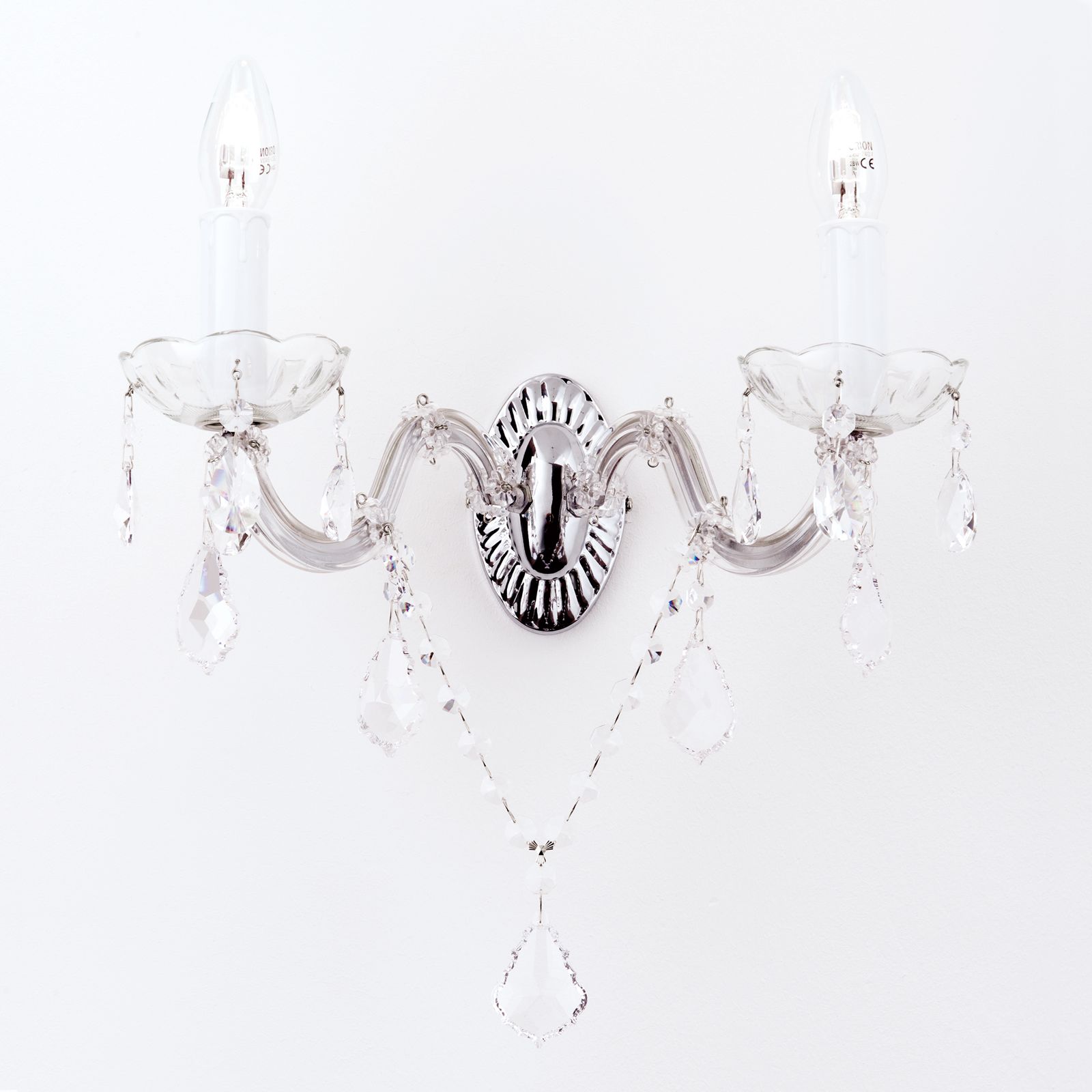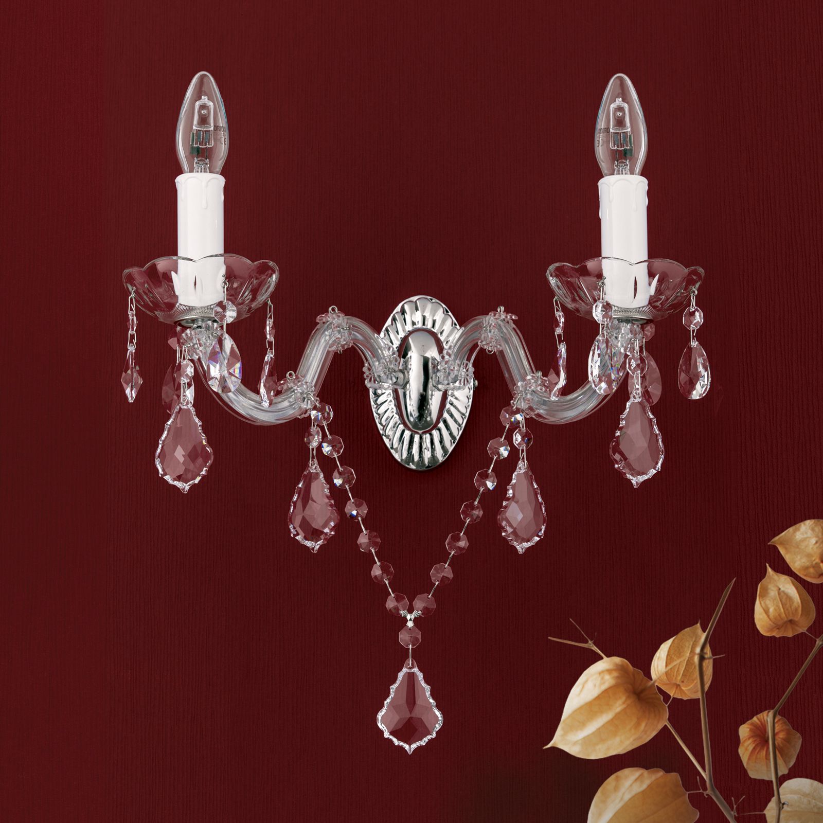 Wandleuchte THERESA, 2-flammig, silber, mit Asfour Kristallen