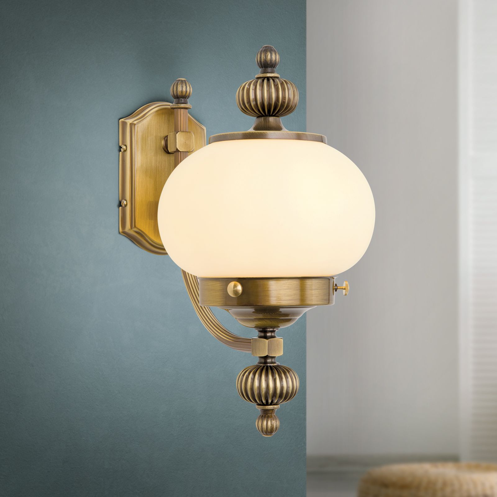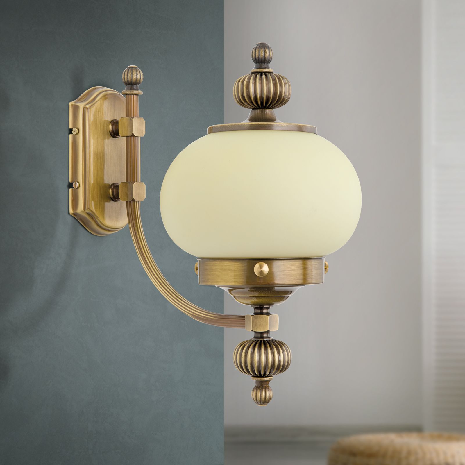 Wandleuchte WIENER NOSTALGIE, 1-flammig, Patina, mit champagne mattem Glas, aufwärts