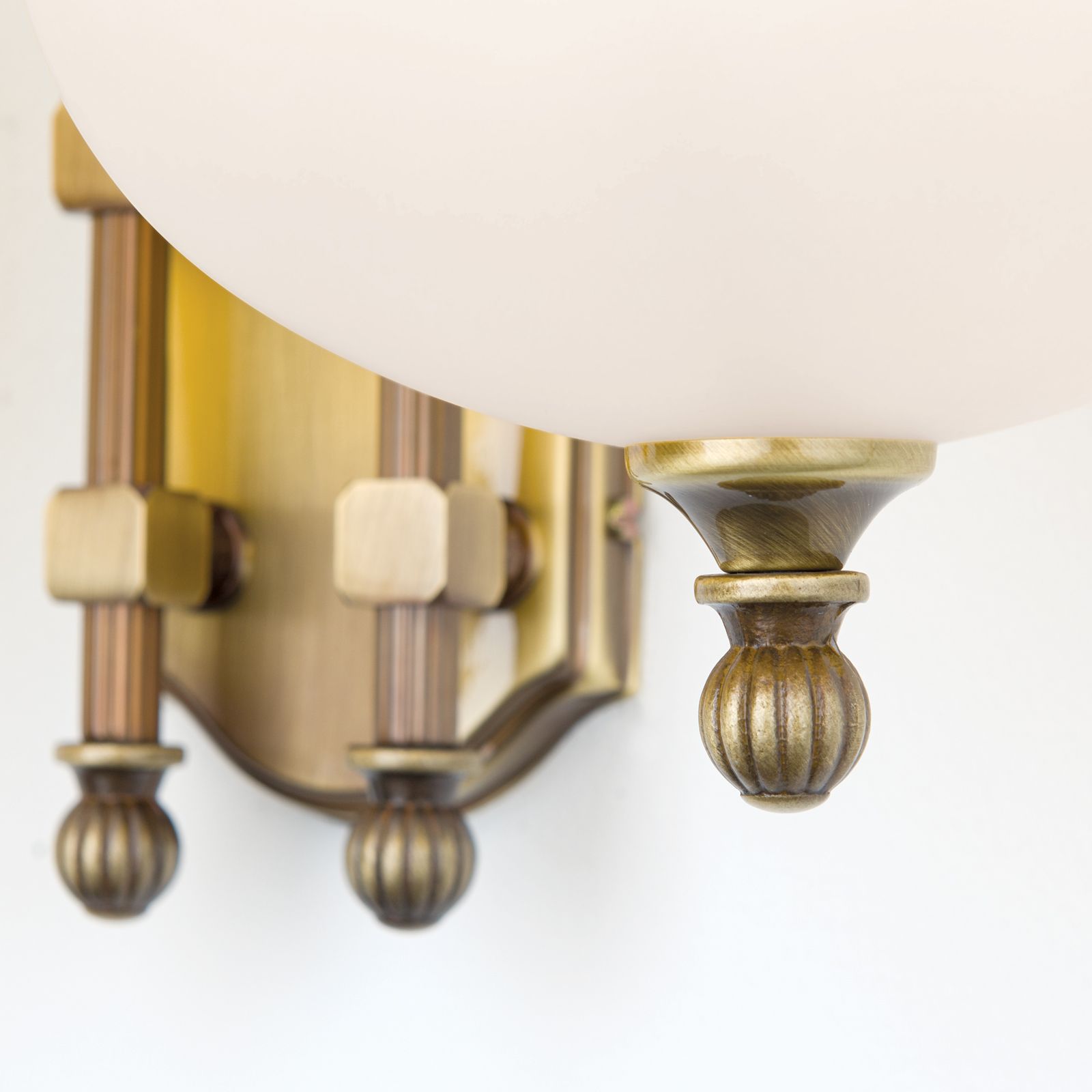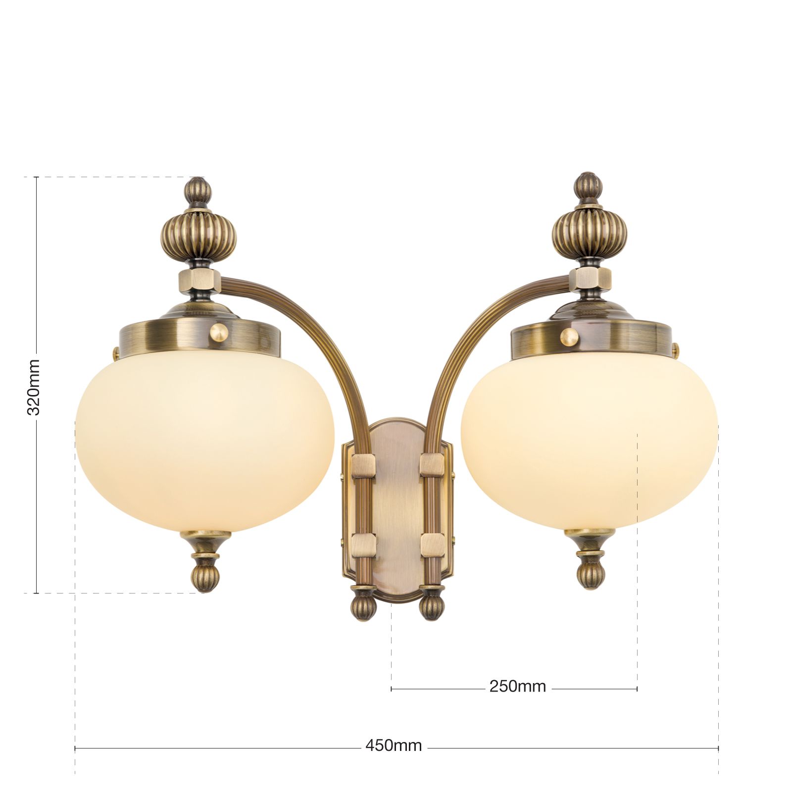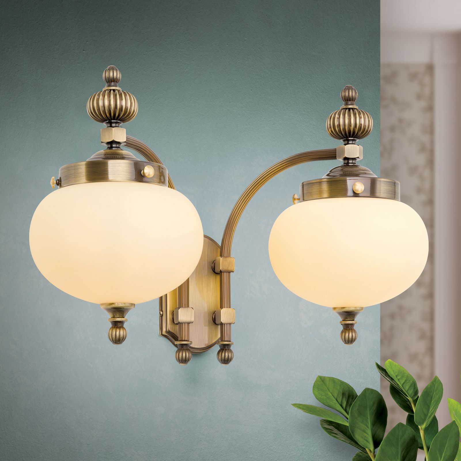 Wandleuchte WIENER NOSTALGIE, 2-flammig, Patina, mit champagne mattem Glas, abwärts