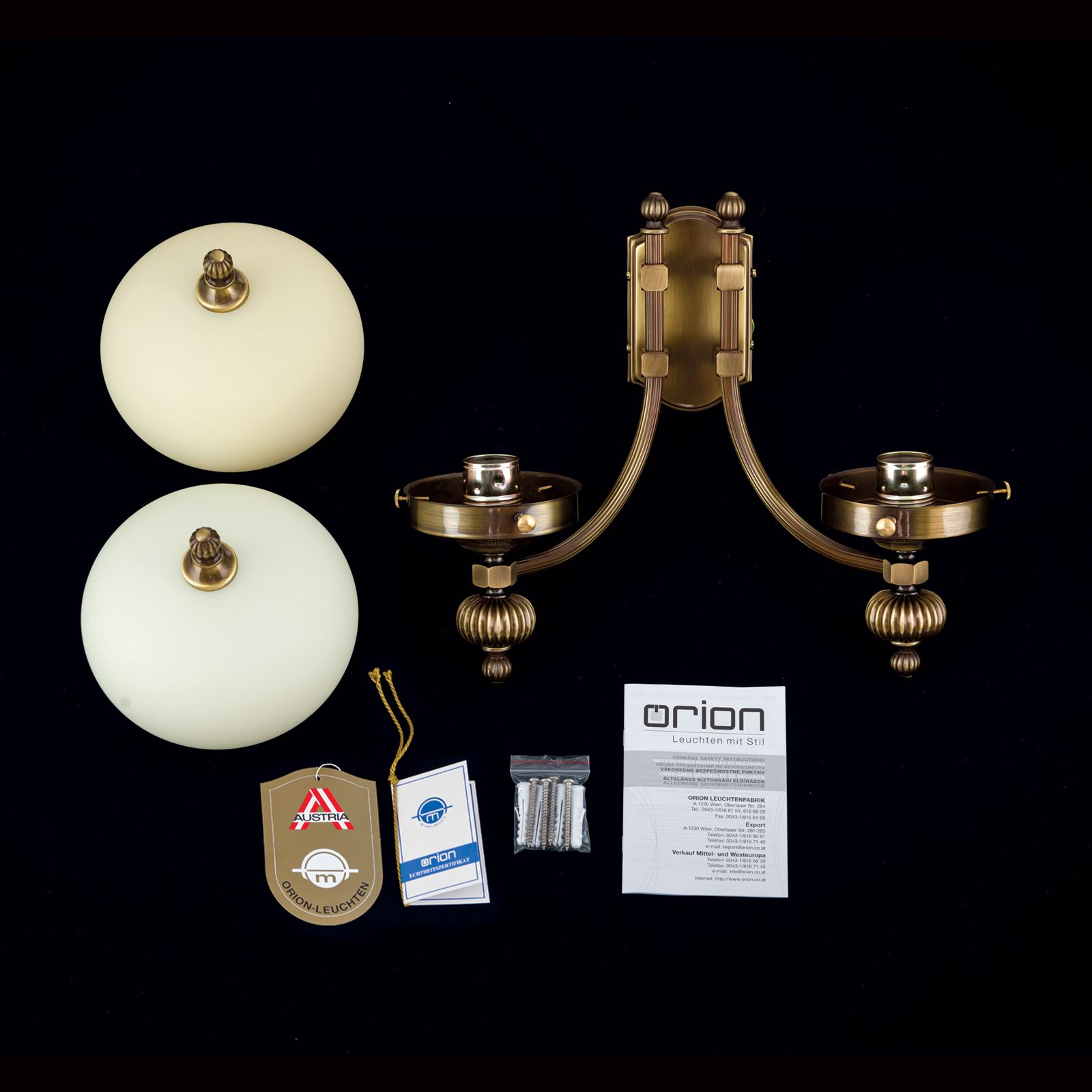 Die 2-flammige WIENER NOSTALGIE-Wandleuchte ist ganz im Stil der Wiener Jahrhundertwende-Leuchten gehalten. In den Kaffeehäusern dieser glänzenden Epoche erhellten sie einst die brillanten Köpfe literarischer und wissenschaftlicher Größen. Heute spenden sie ihr Licht womöglich den großartigen Geistern der Zukunft. Der Erfolg dieses Leuchtenstils liegt vor allem im perfekten Wechselspiel zwischen Funktion und Ästhetik. Jedes Element ist beides zugleich: die Arme sind Stützen und Formspiegelung der Schirmbögen, die Fixierschrauben sind Halterungen und Struktur gebende Zierde. Die Leuchte liefert mit zwei E27-Fassungen eine Leistungsaufnahme von je bis zu 60 Watt.