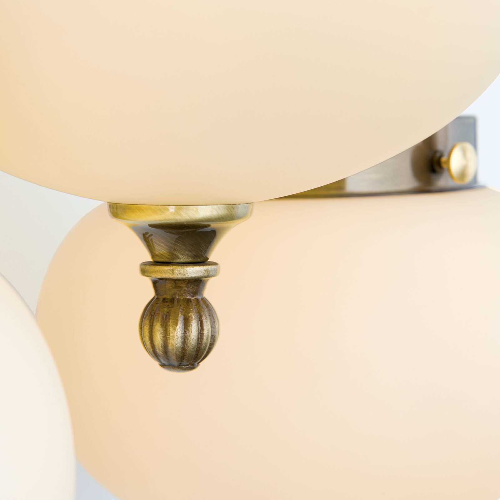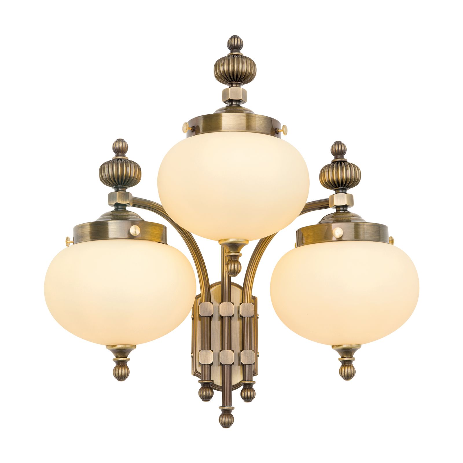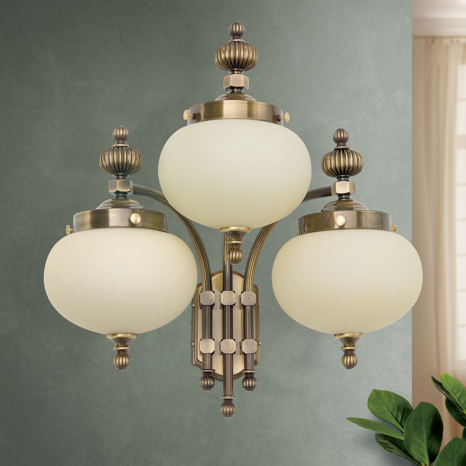 Wandleuchte WIENER NOSTALGIE, 3-flammig, Patina, mit champagne mattem Glas, abwärts